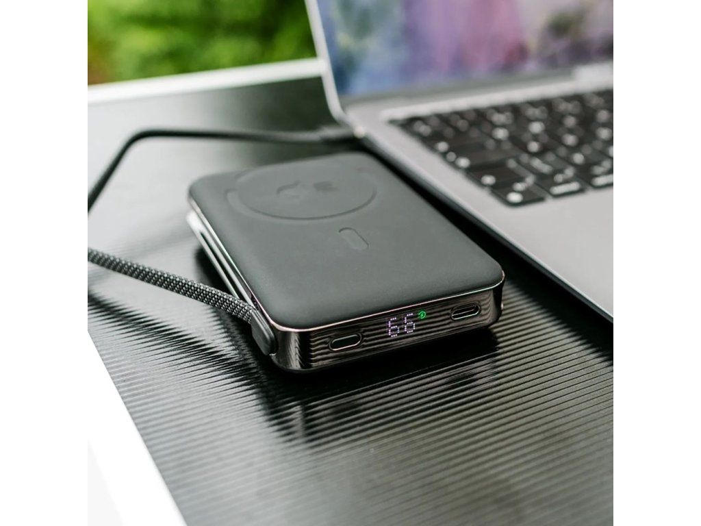 Výkon bezdrátové nabíjecí plochy 15W Magnetická powerbanka s certifikací nejnovější technologie bezdrátového nabíjení Qi2 zajistí rychlé, efektivní a spolehlivé napájení. Nejsou třeba žádné kabely. Integrovaný USB-C kabel Tato elegantní powerbanka s čistým designem má integrovaný USB-C kabel s výkonem 35W. Kabel lze použít jak pro nabíjení externího zařízení tak dobití powerbanky samotné. Už nikdy nezapomenete doma kabel pro nabíjení, protože ho máte vždy sebou. Kapacita 10.000mAh Kapacita 10.000mAh vám pohodlně vystačí na více než jedno nabití běžného smartphonu. Všestranný USB-C port Za pomoci USB-C portu powerbanku dobíjejte nebo jednoduše nabíjejte své zařízení. Nabíjejte až tři zařízení najednou Powerbank vám umožní nabíjení tří zařízení současně. Jedno za pomocí bezdrátové nabíjecí plochy Qi2, druhé pak pomocí integrovaného USB-C kabelu a třetí přes USB-C port ke kterému jednoduše připojíte kabel.Dodatočné parametre