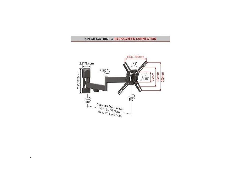 • Montážna vzdialenosť: nastaviteľná od VESA 75x75 do VESA 200x200 mm