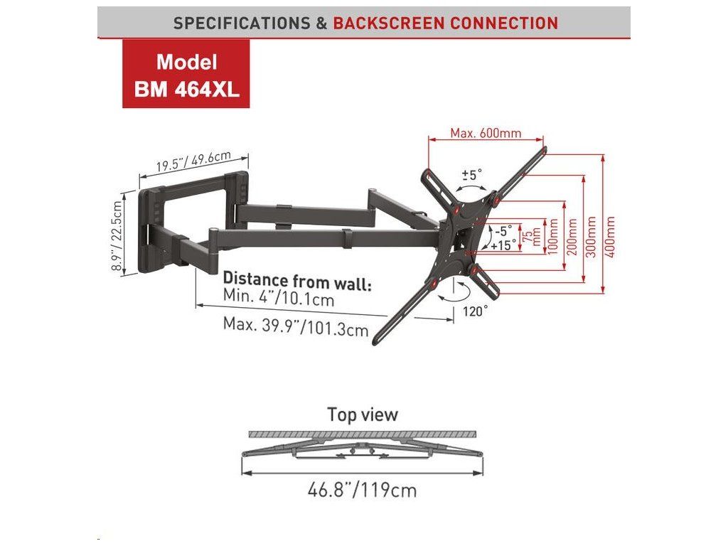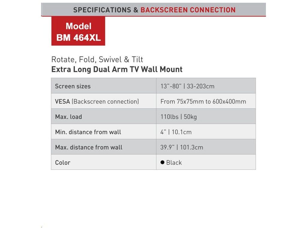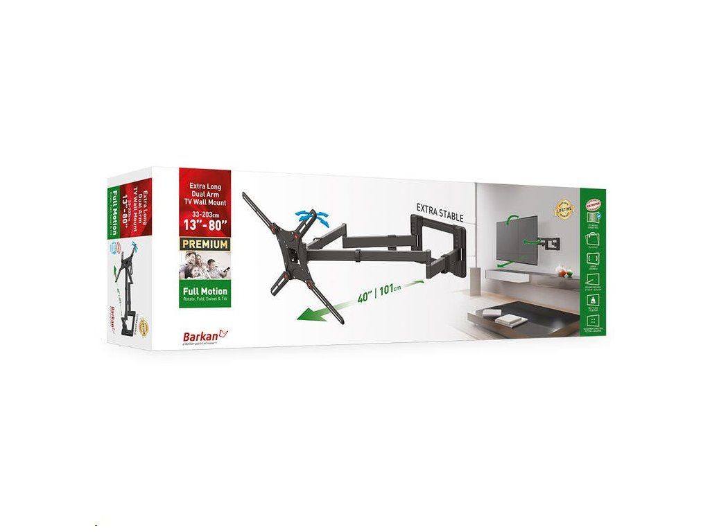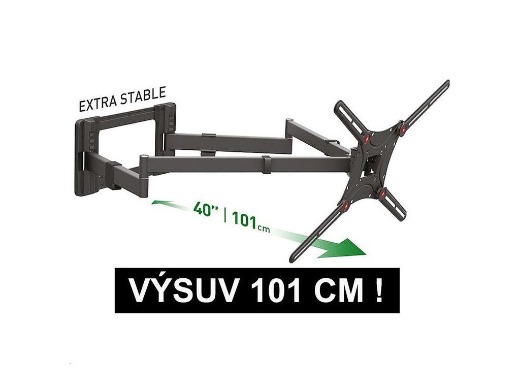 Kvalitný´ a masívny´ 4-pohybovýý extra predĺženýý úchytá s hý suvom do 101 cm. Nosnosť do 50 kg, pre televízory od 32“ do 80“.