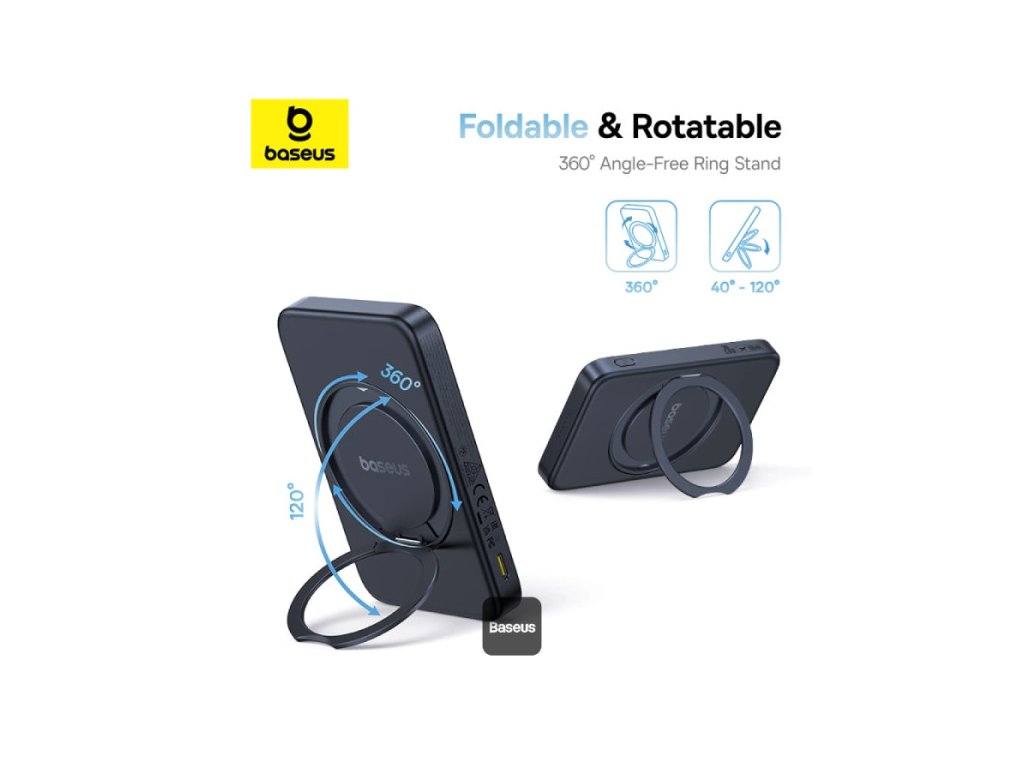 Magnetická bezdrátová powerbanka Baseus PicoGo Qi2 5000mAh, 20W ultratenká rychlá baterie MagSafe s portem USB-C In/Out 15W bezdrátová nabíječka 360° otočný kruhový stojan, lehká nabíječka pro iPhone – černá *Rychlé bezdrátové nabíjení: 15W bezdrátové nabíjení s certifikací Qi2, 2x rychlejší než 7,5W nabíječky. *Kompaktní a přenosná: Lehký design s kapacitou 5000 mAh, ideální na cesty. *Duální nabíjení: Nabíjejte dvě zařízení současně prostřednictvím bezdrátového připojení a USB-C. *Ergonomický design: Pohodlné, přirozené uchopení pro snadnou manipulaci. *Otočný stojan: 360° nastavitelný stojan pro sledování bez použití rukou a multitasking. *Univerzální kompatibilita: Funguje se zařízeními podporujícími Qi a USB-C, včetně iPhone a Samsung. *Vhodné pro leteckou společnost: Ideální pro cestování s bezpečnými kapacitními limity pro leteckou dopravu.Dodatočné parametre