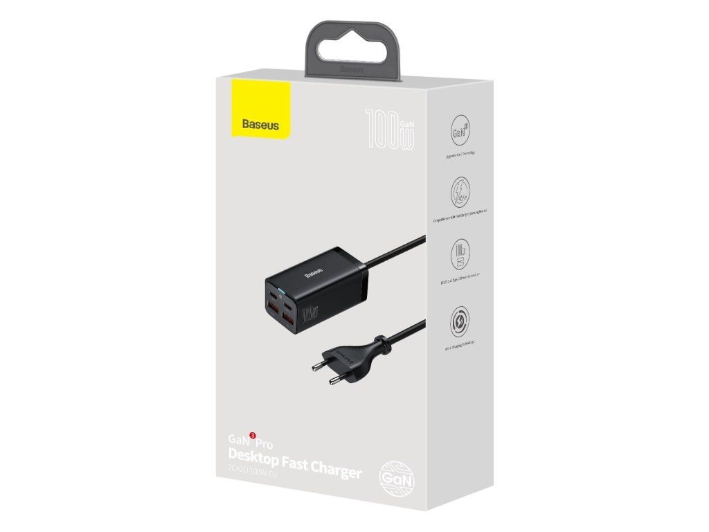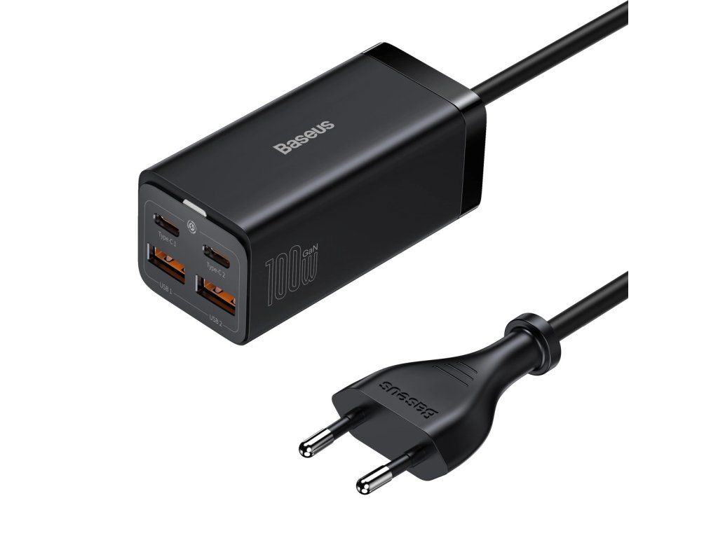 Baseus Rýchlonabíjačka do siete GaN3, 2x USB-A, 2x USB-C 100W čierna