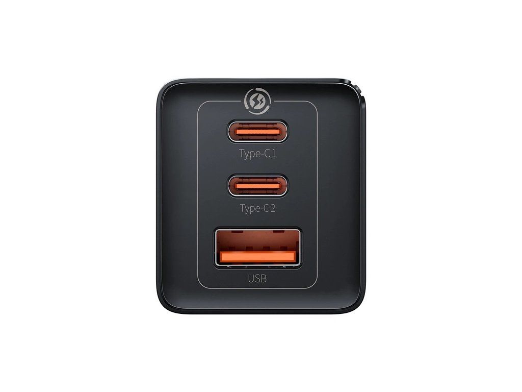 Baseus GaN5 Pro 65W síťová rychlonabíječka Vlastnosti * výstupní výkon 65W * standard rychlého nabíjení: AFC (Adaptivní rychlé nabíjení Samsung), PD (Power Delivery), QC (Qualcomm Quick Charge) * nabíjení až tří zařízení současně * technologie regulace teploty BCT * balení obsahuje 100W kabel USB-C-USB-C, 1m Technické parametry Výstupní napětí: * USB-C1: 5V/3A, 9V/3A, 12V/3A, 15V/3A, 20V/3,25A * USB-C2: 5V/3A, 9V/3A, 12V/3A, 15V/3A, 20V/3,25A * USB-A: 5V/3A, 9V/3A, 12V/3A, 20V/3A * USB-C1 + USB-C2: 45W + 20W * USB-C1 + USB-A: 45W + 18W * USB-C1 + USB-A: 15W * USB-C1 + (USB-C2 + USB-A): 45W + 15W Vstupní proud: AC 100-240V ~50/60Hz 1,5A max. Porty: * 2x USB-C * 1x USB-A Barva: černá Rozměry: 98x32x37mm Hmotnost: cca 121g Záruka: 2 rokyDodatočné parametre