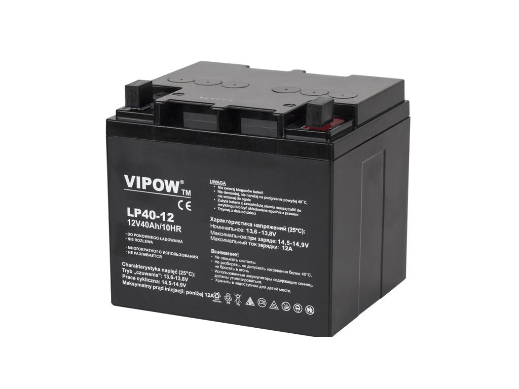 Batéria olovená 12V/40Ah VIPOW BAT0222 gélový akumulátor