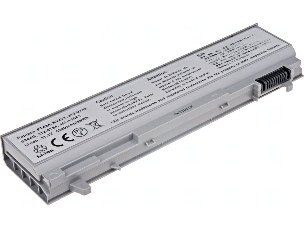 Typ: Li-ion Kapacita: 5200 mAh (58 Wh) Barva: šedá Napětí: 11.1 V Rozměry: 205.9x46.8x20.9 mm Hmotnost: 310 g Produktová čísla: 312-0748, 312-0753, 312-0917, 312-7414, 451-10583, 451-11399, 451-11443, C719R, FU268, FU272, GU715, KY265, KY266, KY466, KY477, NM632, PP27L, PT434, PT435, RG049, TX283, U844G, W04XF, W1193 Kompatibilní modely: Dell Latitude E6400, Dell Latitude E6400 ATG, Dell Latitude E6400 XFR, Dell Latitude E6410, Dell Latitude E6410 ATG, Dell Latitude E6500, Dell Latitude E6510, Dell Precision M2400, Dell Precision M4400, Dell Precision M4500Dodatočné parametre
