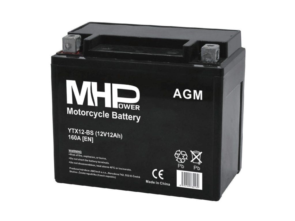 Baterie motocyklová 12V / 12Ah MHPower YTX12-BS