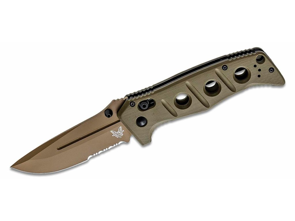 Benchmade 275SFE-2 Sibert Adams Serrated taktický vreckový nôž 9,6 cm, tmavohnedá, zelená, G10