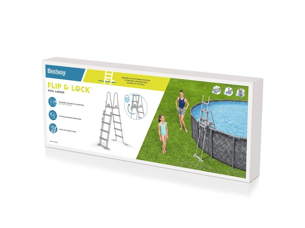 Tento 4-stupňový bezpečnostný rebrík do bazéna Flowclear od Bestway je určený pre nadzemné bazény a pomáha plavcom bezpečne vstupovať a vystupovať z bazéna.
