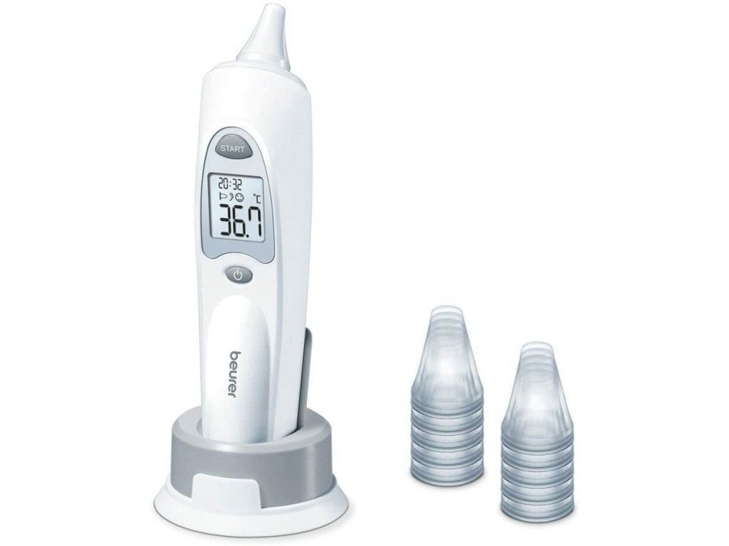Digitálny teplomer Beurer FT58 do ucha, ktorý zabezpečuje bezpečné a hygienické meranie pomocou infračerveného lúča behom niekoľkých sekúnd.