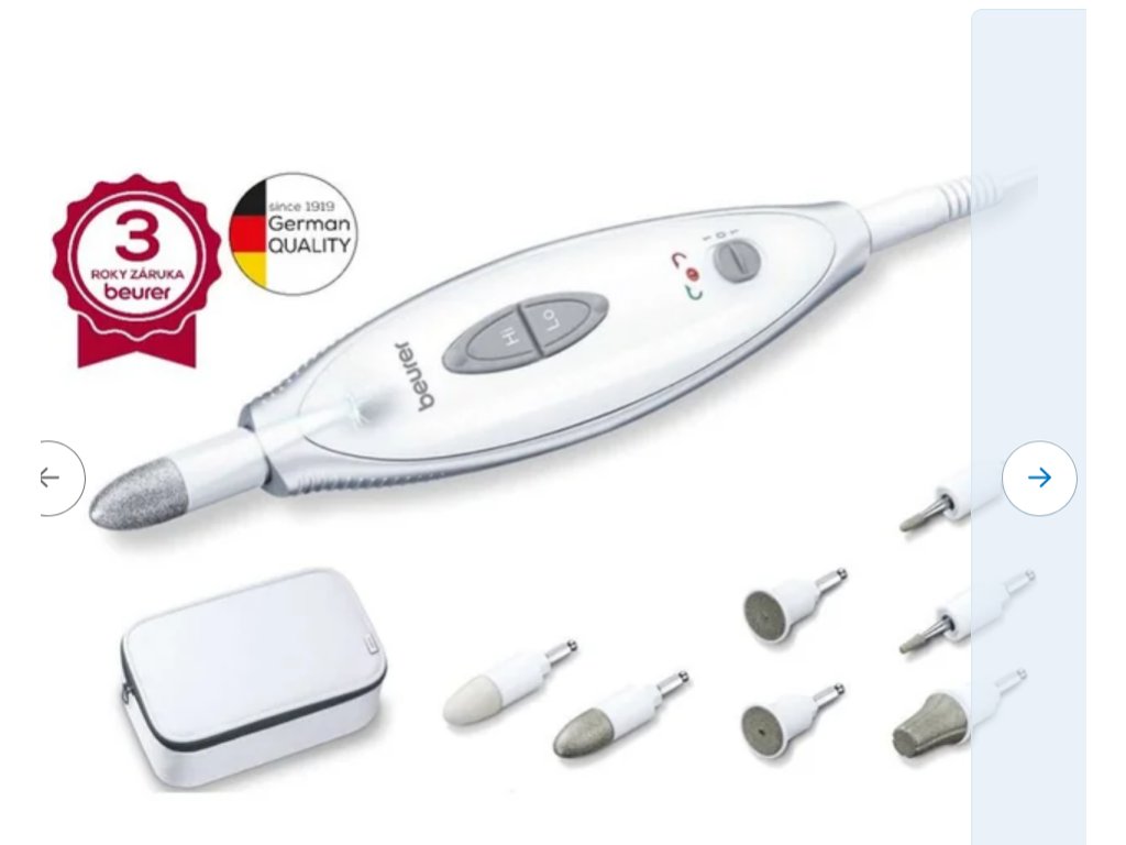 Beurer MP 41 sada na manikúru a pedikúru je spoľahlivý prístroj na starostlivosť o nechty rúk a nôh, ktorý prináša upravený vzhľad a komfortnú úpravu v každej situácii. Hlavnou výhodou je jednoduchý výber z až 7 zafírových nadstavcov a 2 nastavenia rýchlosti, vďaka čomu zvládnete úpravu nechtov aj ošetrenie zrohovatenej kože.