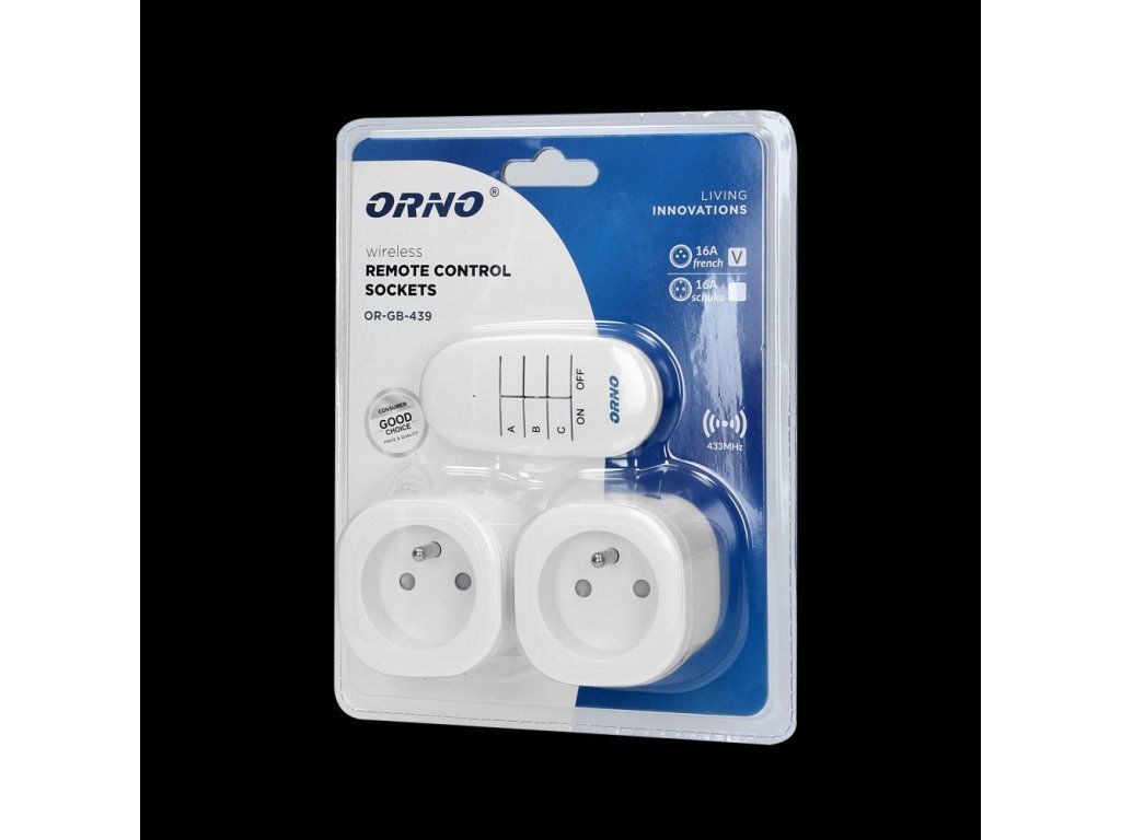 Bezdrôtová zásuvka ORNO OR-GB-439 s diaľkovým ovládaním, 2+1, biela
