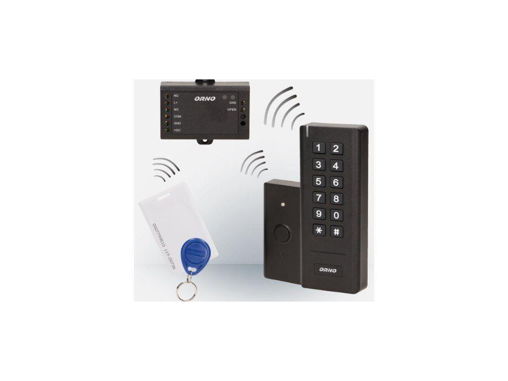 ORNO Bezdrôtový kódový zámok s čítačkou kariet, IP20, RFIDBezdrôtový kódový zámok, ktorý kombinuje funkcie digitálnej klávesnice pre ovládanie prístupu, rovnako ako čítačky kariet a bezdotykových ovládačov.