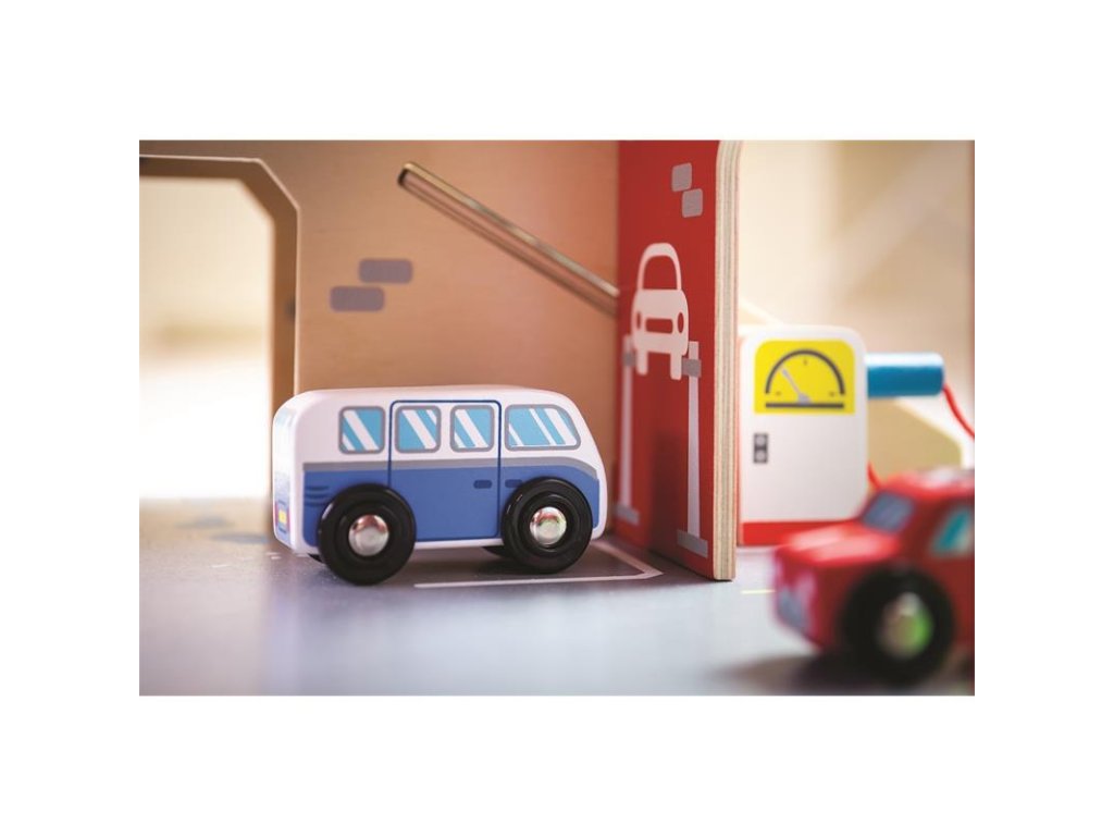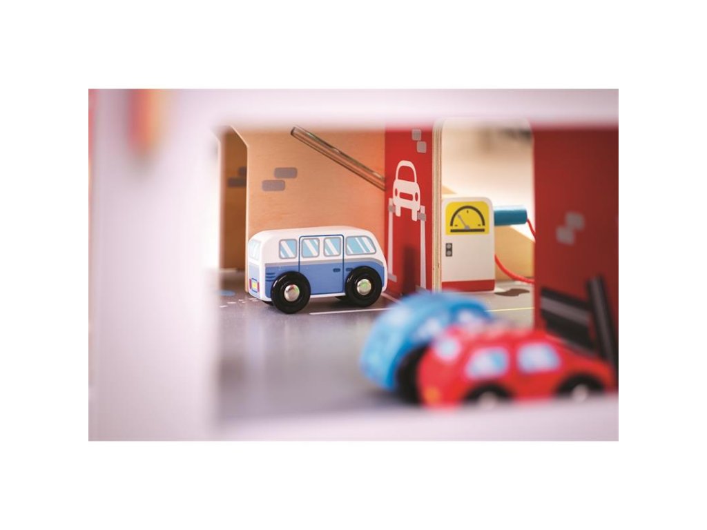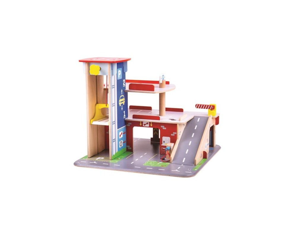 Děti si užijí hru plnou zábavy na každém ze tří pater garáže s parkovištěm. V přízemí mohou autem vjet na fungující výtah a poté vyjet až do druhého patra a zaparkovat. V přízemí děti najdou servis, myčku i pumpu. Z prvního patra mohou auta odjíždět za pomocí výtahu nebo po rampě, ale pozor, auta musí počkat na zvednutí závory! Nejvyšším bodem garáže je heliport. Tato garáž má prostě vše, co malý řidič potřebuje pro dopravení se z bodu A do bodu B. Podporuje kreativitu a představivost. Vyvíjí koordinaci ruka-oko, jemnou motoriku a zručnost. Možno doplnit autíčky Bigjigs Toys a Bigjigs Rail. Vyrobeno z kvalitních materiálů z odpovědných zdrojů. Hlavní vlastnosti: 3 patra s parkovištěm a heliportemfunkční výtahservis, myčka i pumpa v přízemíHodnotenie