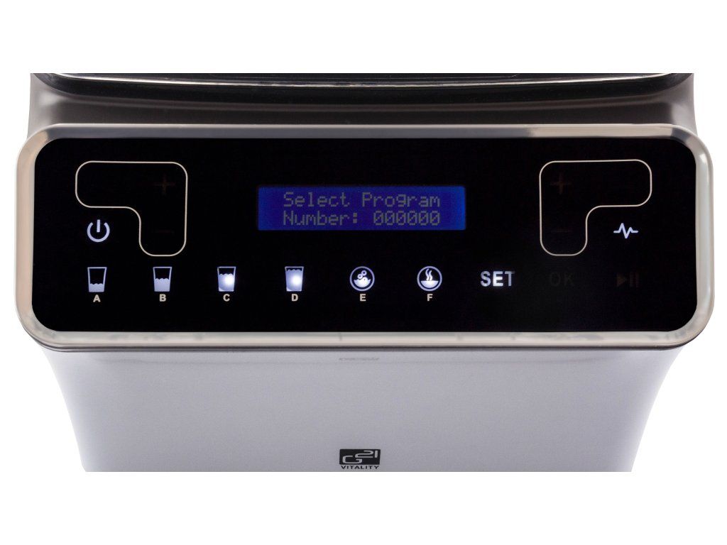 Blender G21 Experience sa ovláda dotykom. Na digitálnom displeji si zvolíte buď niektorý z prednastavených programov pre mixovanie tekutých mixov ako je džús a smoothie v dvoch objemoch (0,5 l a 1 l), polievky alebo pyré. Ďalej si do jeho pamäte môžete uložiť až 6 programov vlastných, s rôznymi otáčkami i dobou mixovania. Vďaka tomu je práca s výkonným stolným mixérom G21 Experience jednoduchá a pri jeho obsluhe nestrácate čas.