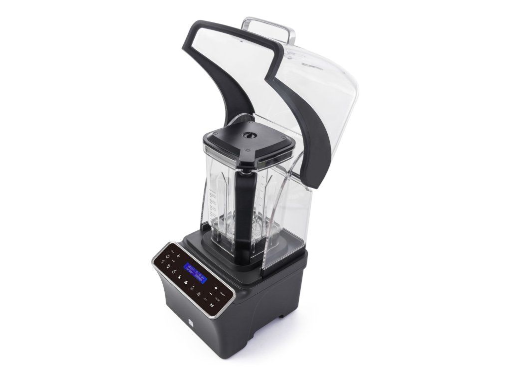 Po uzavření mixovací nádoby se surovinami sklopíte odhlučňovací kryt, jedním dotykem spustíte vakuování a poté můžete mixovat.