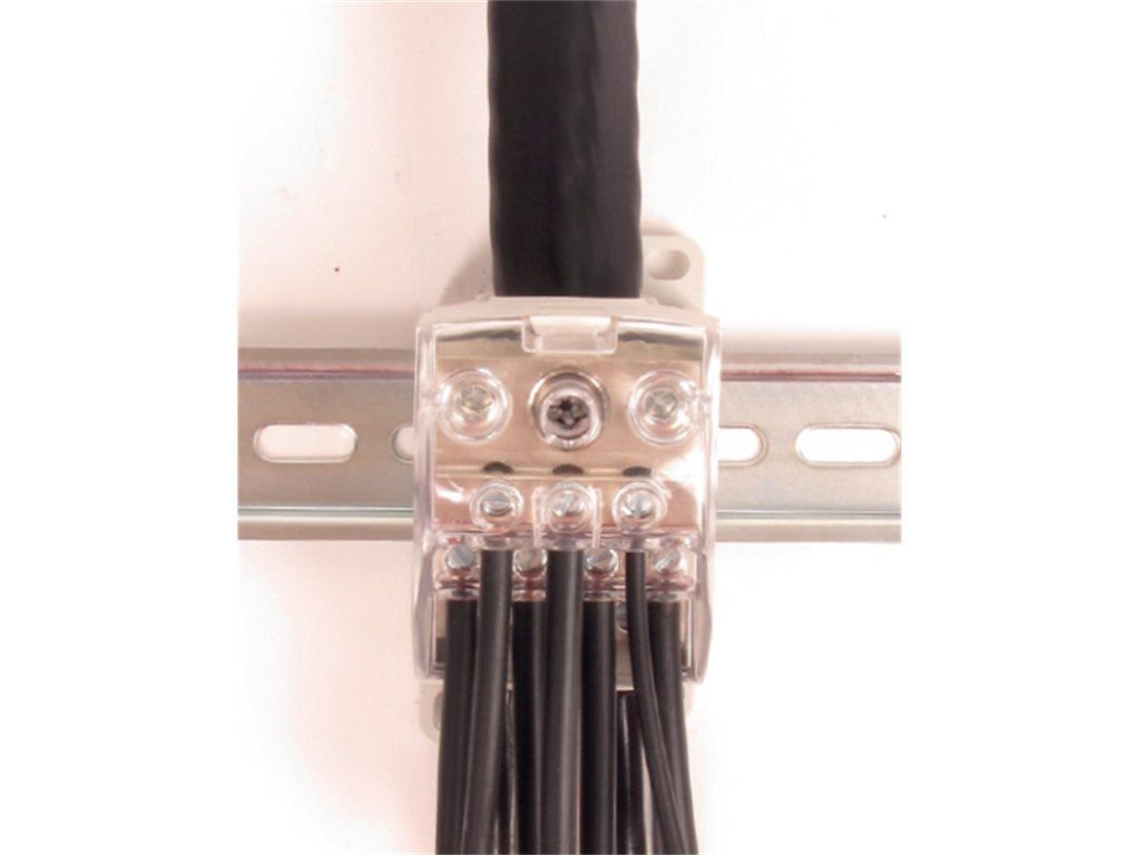 Blok pro rozdělení fází PDB 490 (PVB 400), 1pól., 490A, 690V, šedý/průhl. víko, na DIN