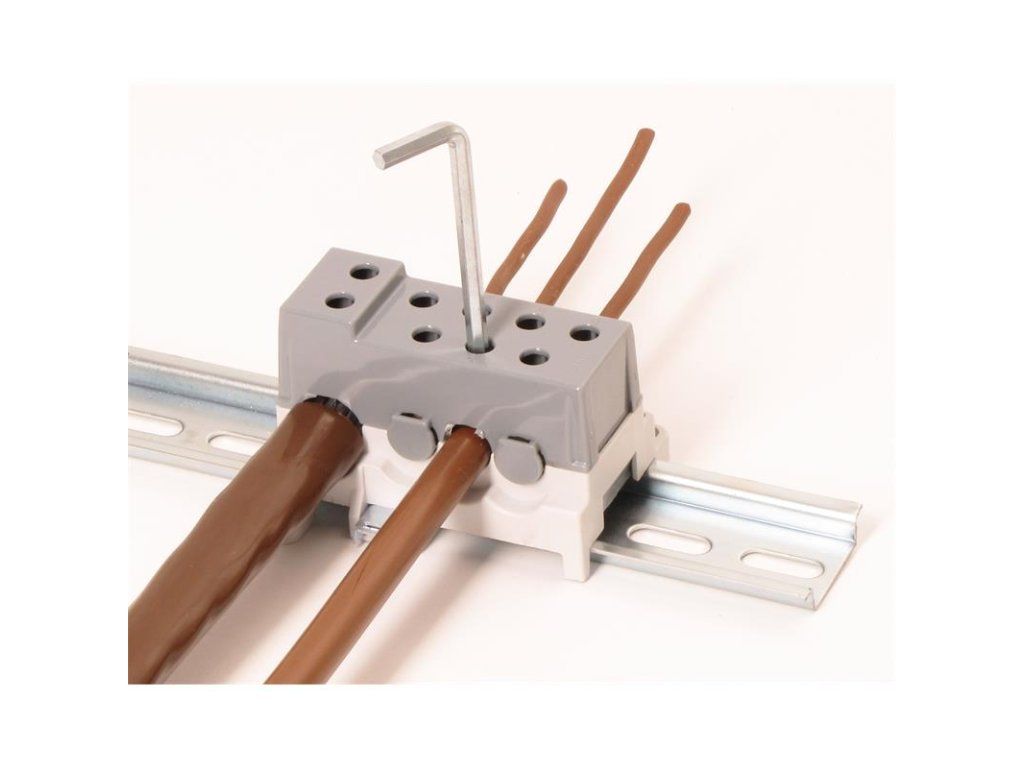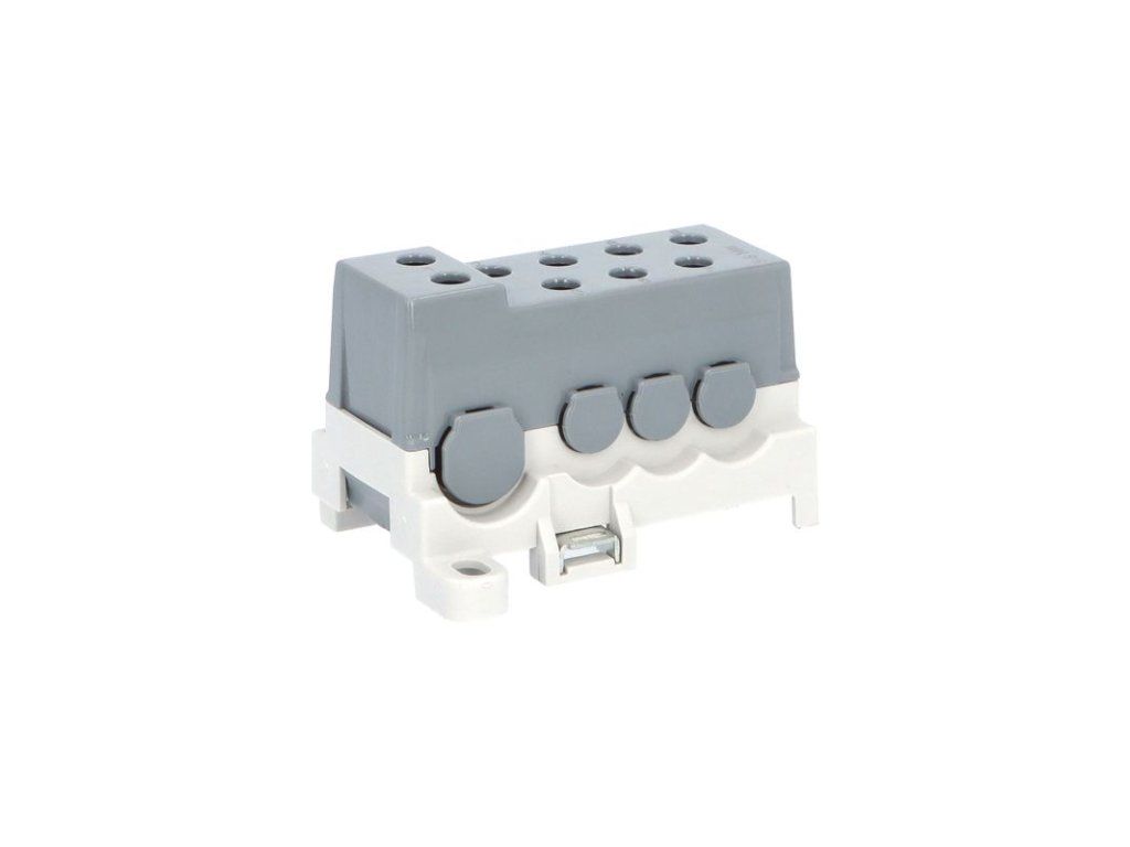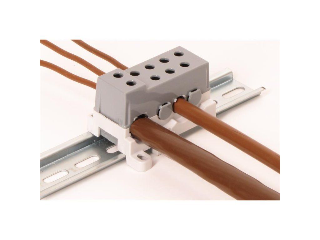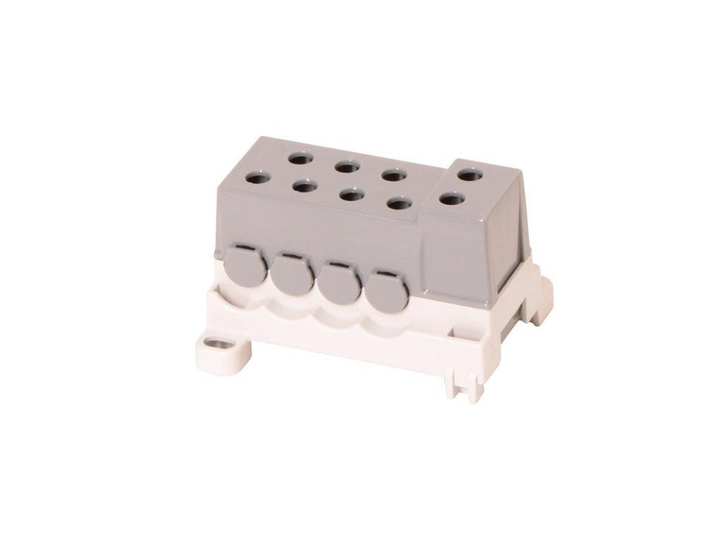Blok pro rozdělení fází PVBS 250-7, 1pólový, pro AL/CU vodiče, jmenovitý proud 250A, jmenovité napětí 690V, barva šedá, montáž na DIN lištu / PANEL, krytí IP20, vstup 1x95mm2, výstup 7x50mm2, rozměr 72x45x47mm. Bloky pro rozdělení fází (rozváděčové bloky) PVBS slouží pro rozdělení přívodního kabelu/vodiče/sběrnice o velkém průřezu na několik menších průřezů. Přívod může být jak kulatý, tak plochý typ vodiče. Bloky značně šetří místo v rozváděčích oproti klasickým třmenovým svorkám. Díky plastovému krytu je zajištěna ochrana před nebezpečným dotykem živých částí. Jsou určeny k instalaci na nosnou lištu 35 mm (s možností dodatečného upevnění šroubem). Vyráběny jsou až do proudové zatížitelnosti 250 A. Povrchově upravená svorka je vhodná jak pro hliníkové, tak pro měděné vodiče. Vodiče se do svorek po odizolování připevňují pomocí šroubového spojení. Šroub dosedá přímo na vodič, proto je nutné jemně slaněné vodiče opatřit dutinkou. Dutinka ale zvětší průřez vodiče a proto je nutné připojovat slaněné vodiče o řád menší než uvedené průřezy. U pevných vodičů toto není nutné.Hlavní přednosti: