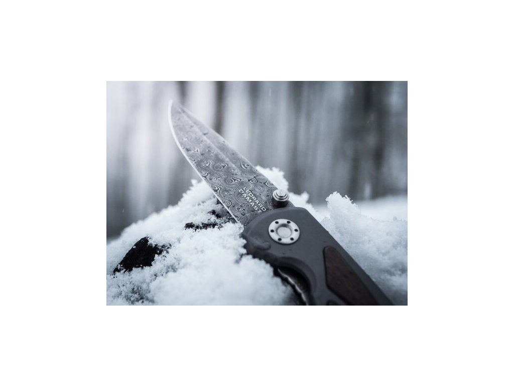 Böker Manufaktur Solingen 110084DAM Leopard-Damast I vreckový nôž 9 cm, damašek, hliník, drevo