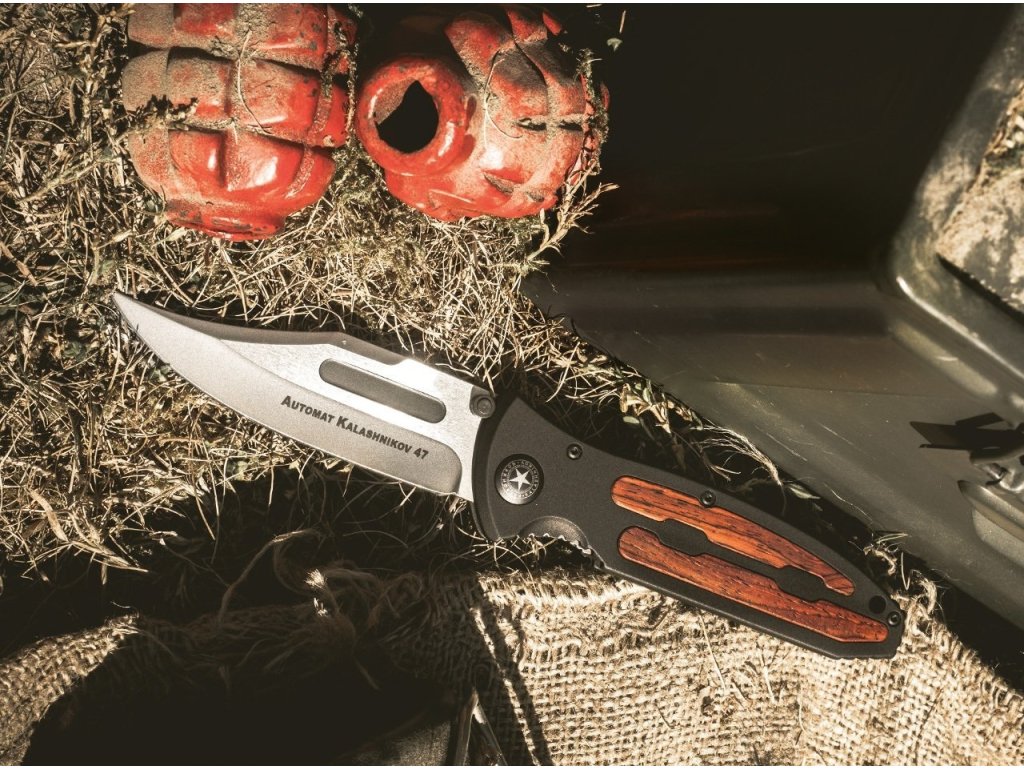Komentár k produktu Böker Manufaktur Solingen 110147 Kalashnikov Duty taktický vreckový nôž 10 cm, čierna, hliník, drevo