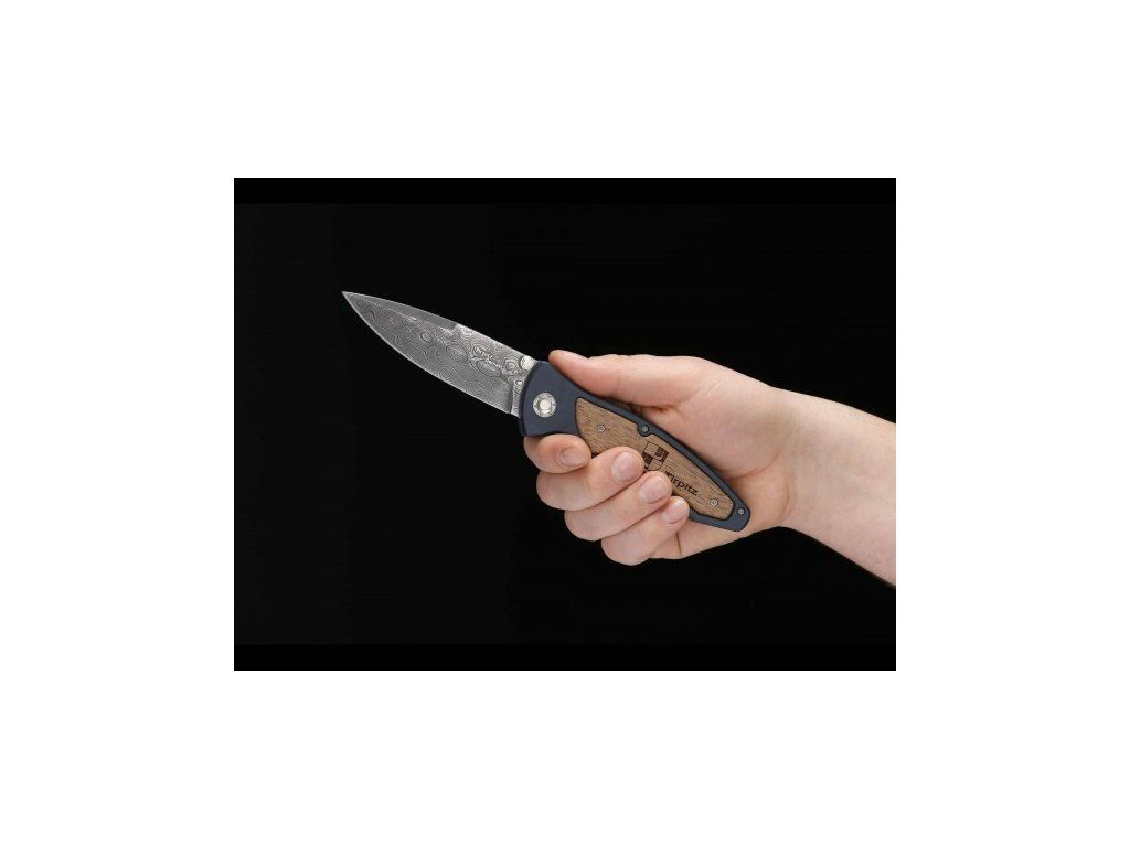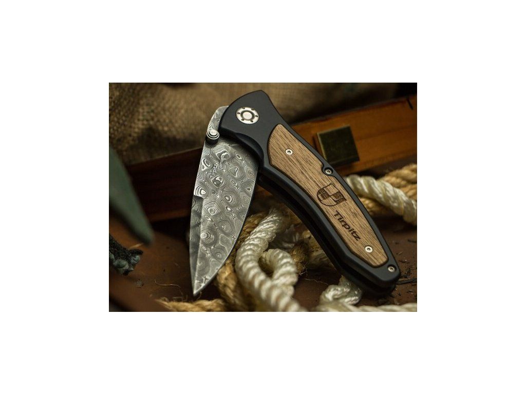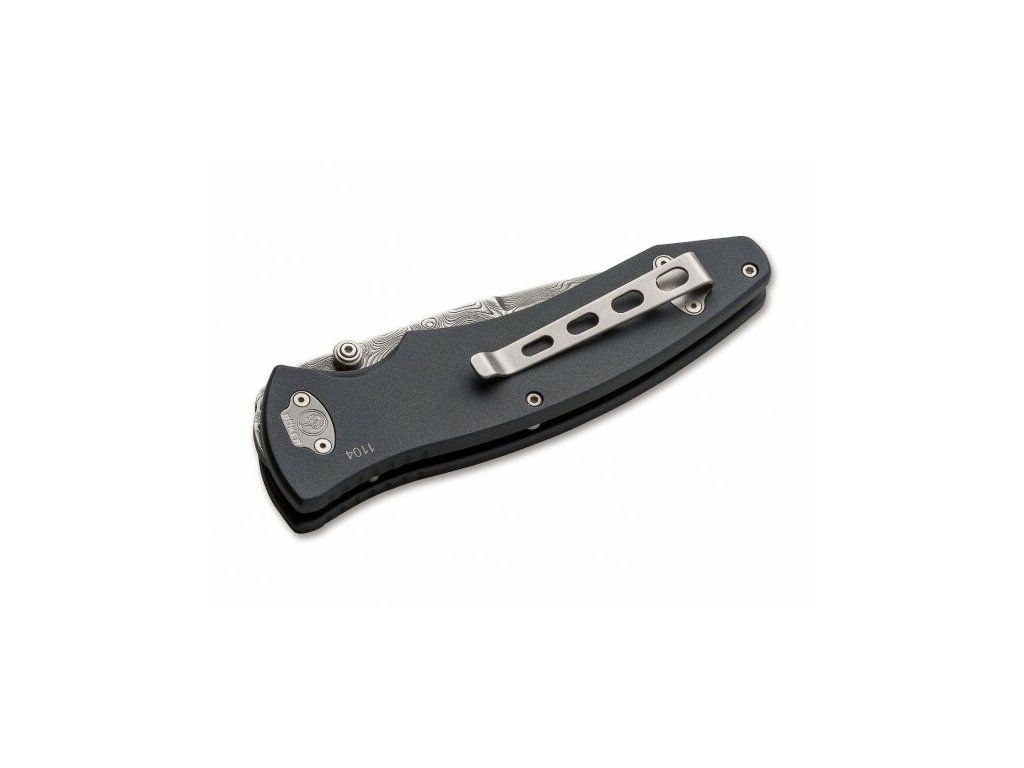 Böker Manufaktur Solingen 110190DAM Tirpitz-Damascus vreckový nôž 9,9 cm, damašek, hliník, orech