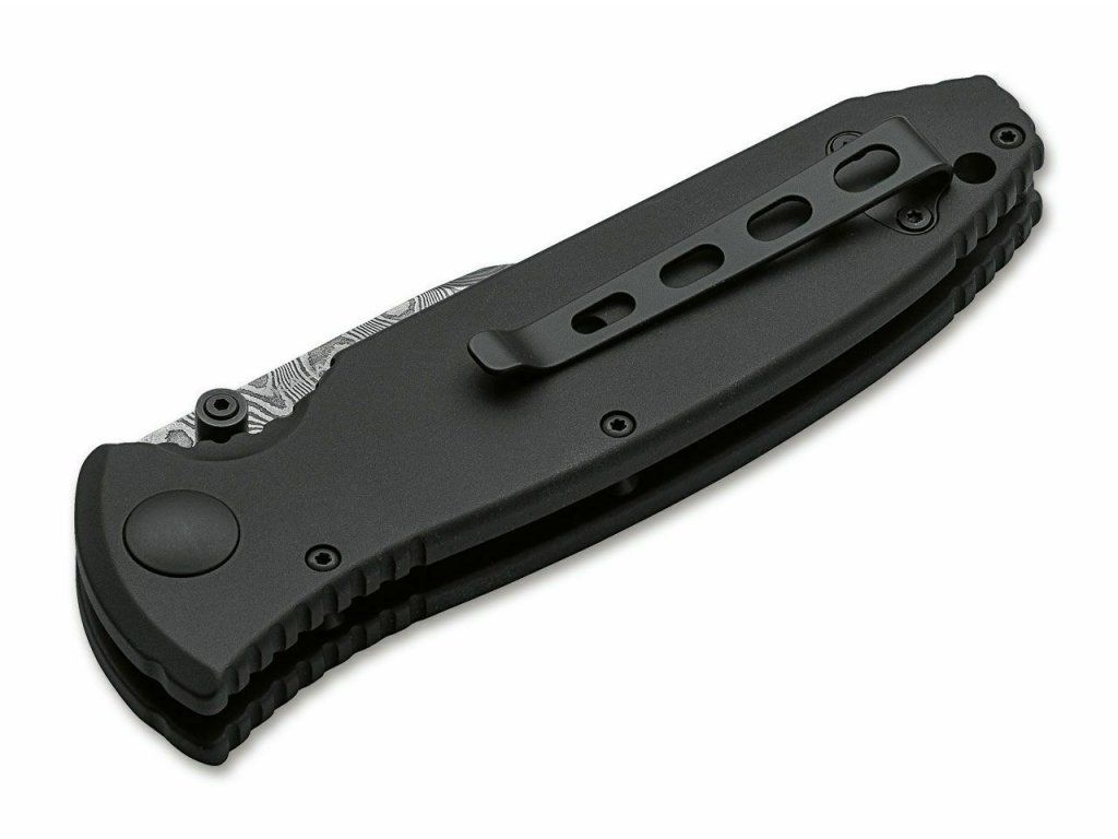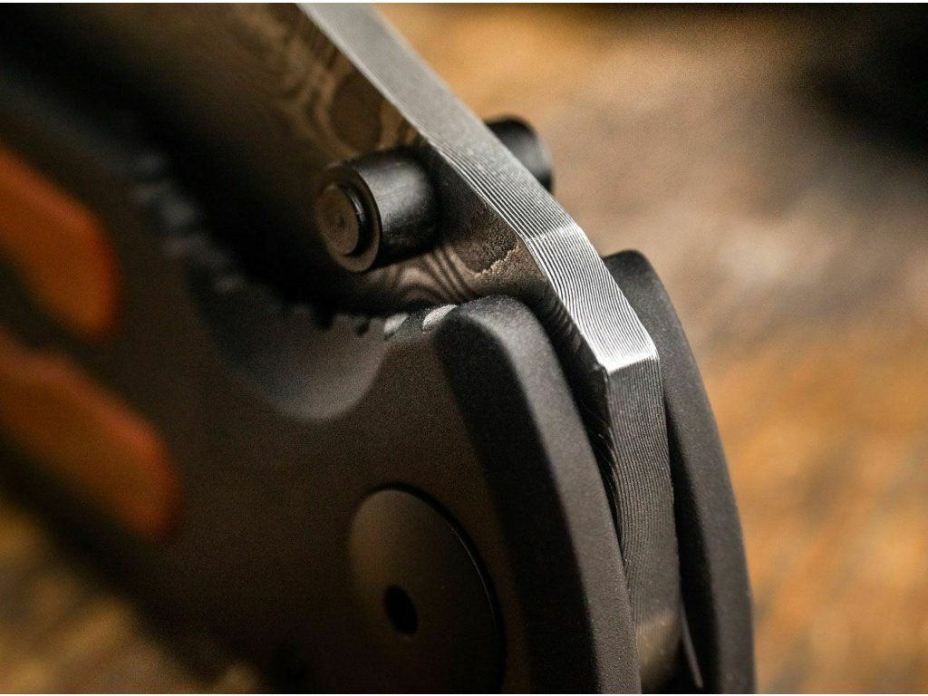 Má čepeľ s hladkou hranou z 80 vrstvovej damaškovej ocele od Chada Nicholsona vo vzore Virus. Otvára sa palcovým kolíkom a zaisťuje ju poistka Linerlock.