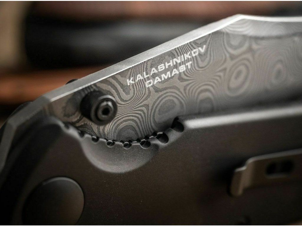 Böker Manufaktur Solingen 11KAL48DAM Kalashnikov Bayonet vreckový nôž 9,6 cm, damašek, hliník, drevo