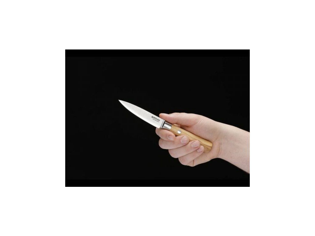 Šúpací nôž Böker Manufaktur Solingen Damast Olive Schälmesser na krájanie, rezanie, šúpanie a dekorovanie ovocia a zeleniny a ich krájanie na tenké plátky pozdĺž. Má čepeľ s hladkou hranou z 37 vrstvovej damaškovej ocele, pričom jadro z ocele VG-10. S pohodlnou rukoväťou z olivového dreva.