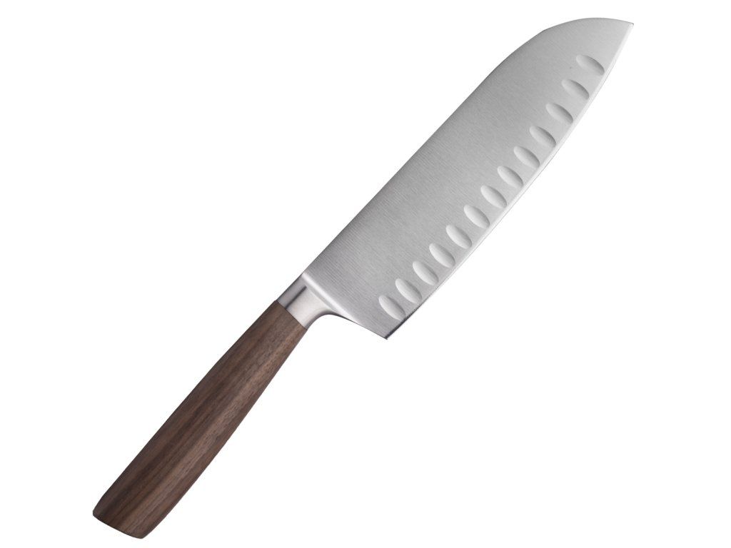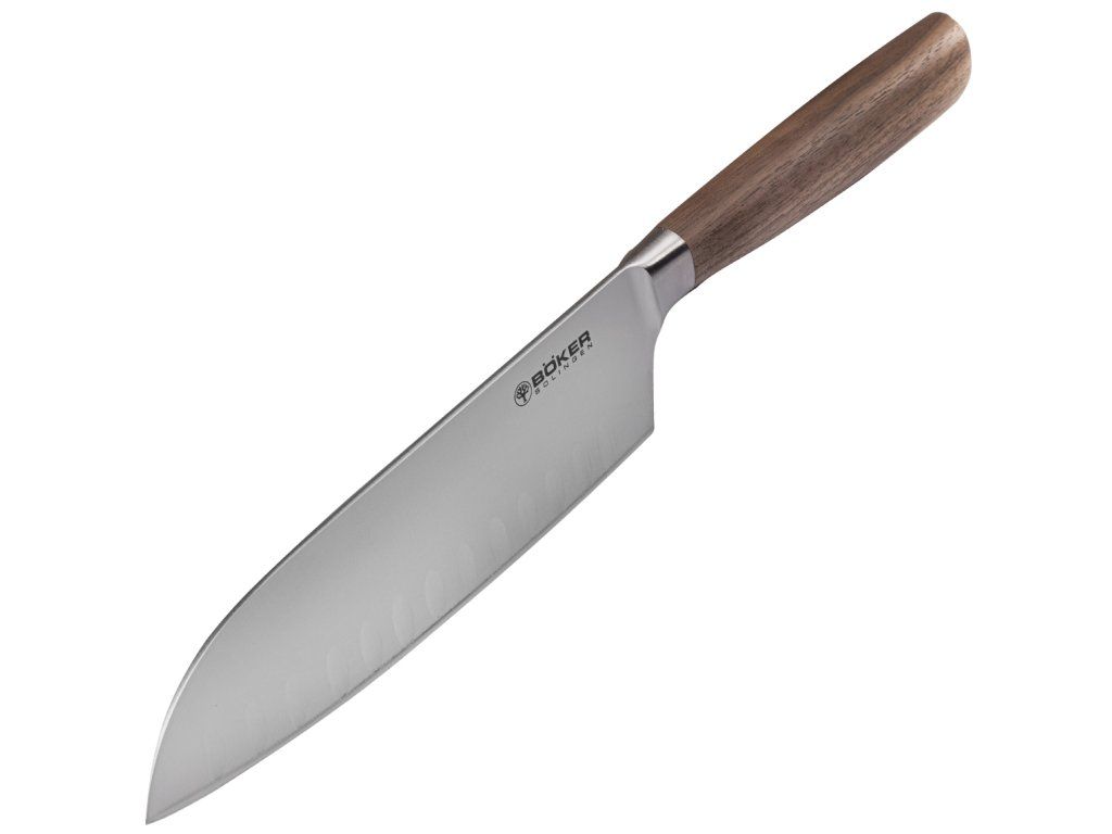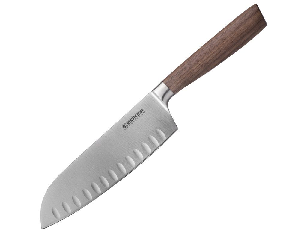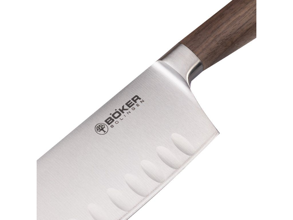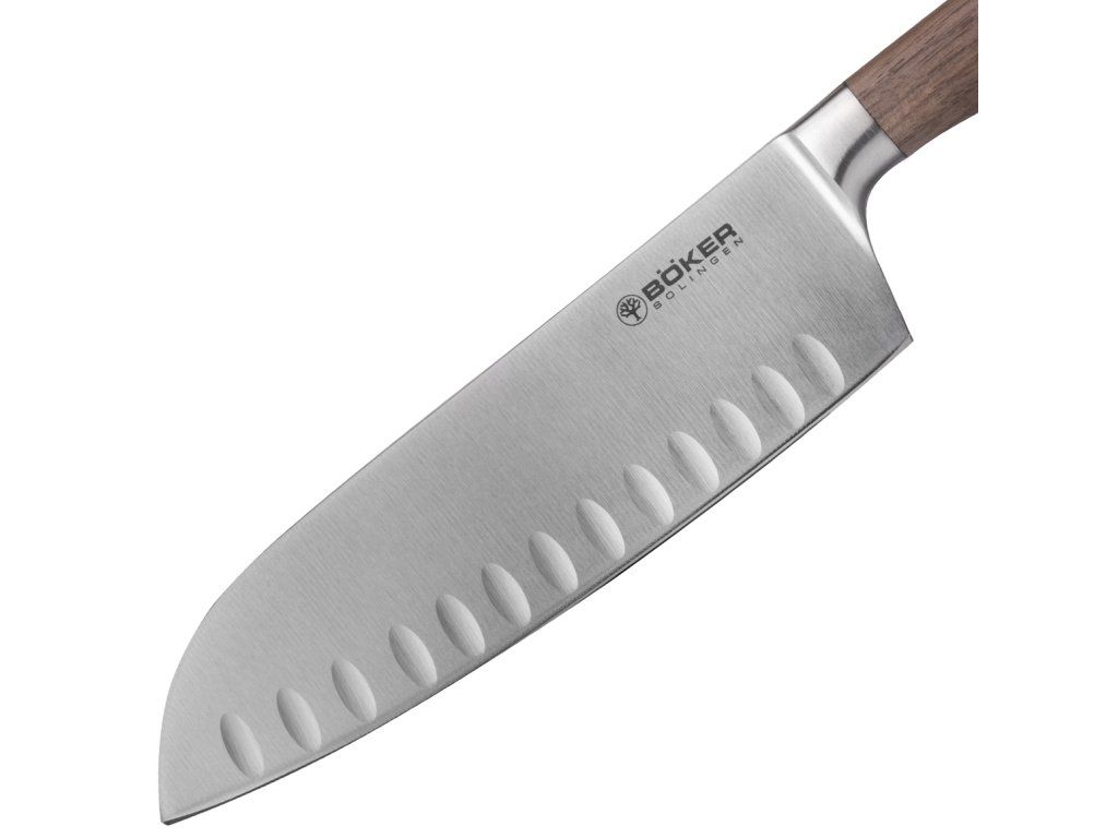 Böker Manufaktur Solingen130735 Core Santoku kuchynský nôž 16,5 cm, dutý okraj, orechové drevo