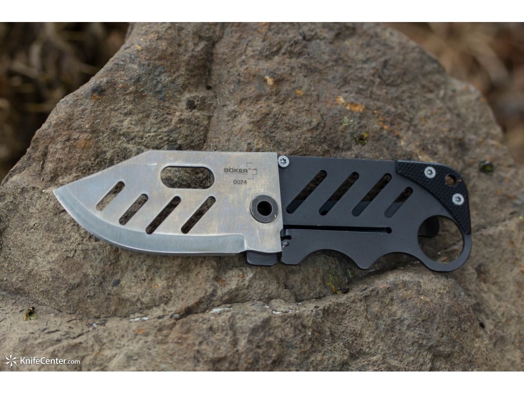 Tenký a ľahký zatvárací vreckový nôž na krk Böker Plus Cred Card Knife s plochým dizajnom navrhol dizajnér John Kubasek, a je vhodný na každodenné (EDC) nosenie a zmestí sa aj do peňaženky. Možno ho nosiť pomocou guľôčkovej retiezky okolo krku alebo pomocou spony na vreckách.
