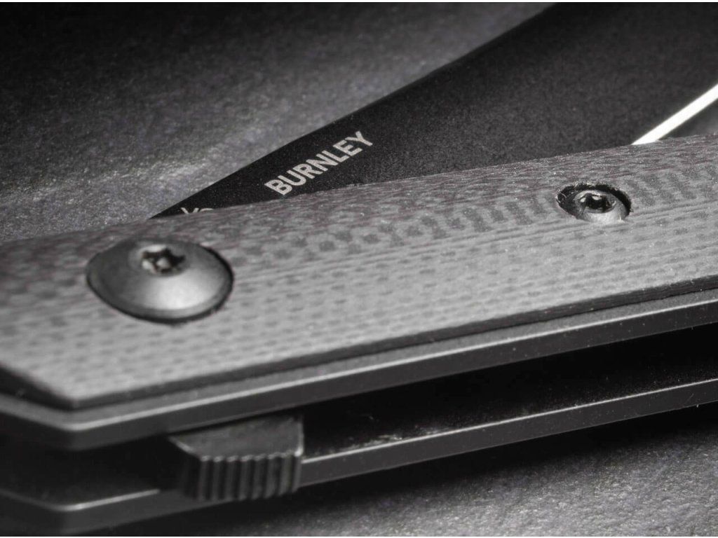 Má čepeľ s hladkou hranou z ocele VG-10 s čiernym povrchom, leží na guľôčkových ložiskách umožňujúcich otváranie vyklápačom Flipper a zaisťuje ju poistka Linerlock.