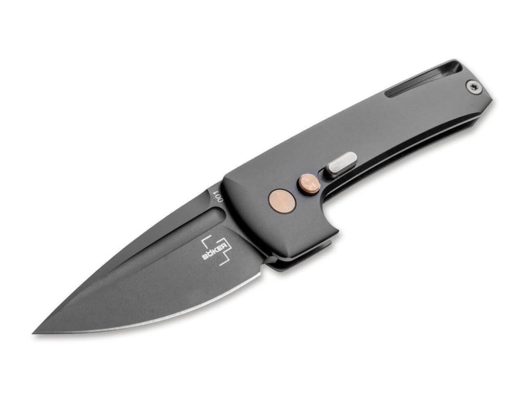 Böker Plus 01BO392 Harlock Mini automatický vreckový nôž 5,2 cm, čierna, hliník, spona