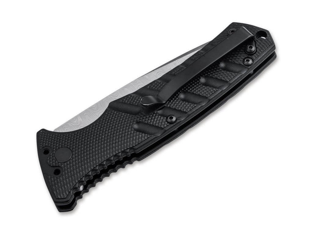 Robustný automatický nôž Böker Plus Strike Damascus vhodný na každodenné (EDC) nosenie, ako aj pre zásahové jednotky.