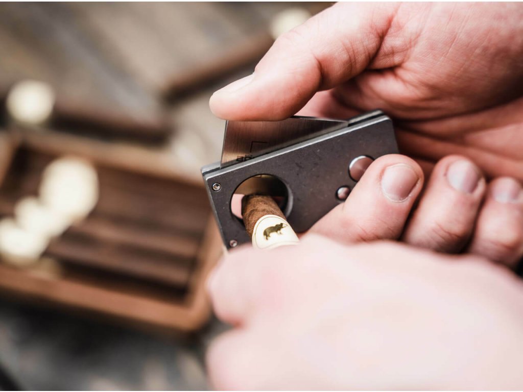 Rukoväť je z titánu, s otvorom na orezávanie cigariet.