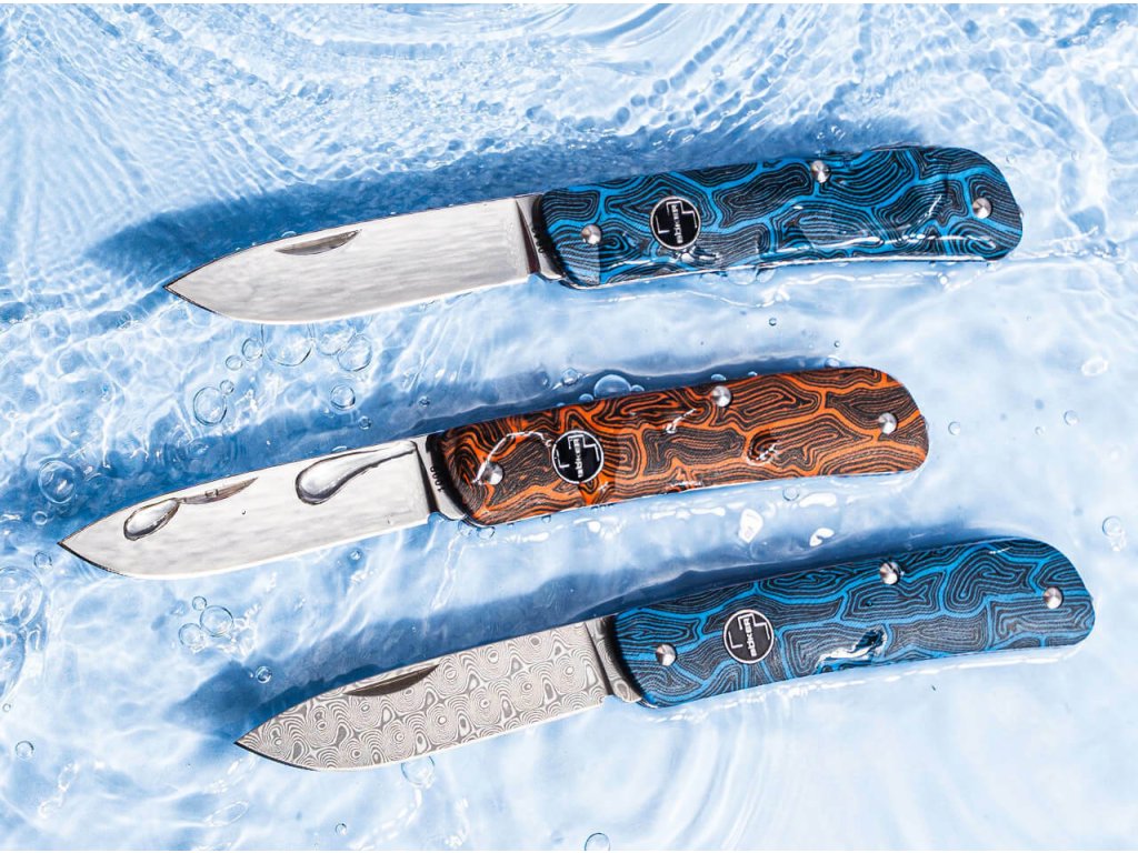 Má čepeľ s hladkou hranou zo 110 vrstvovej damaškovej ocele, otvára sa zárezom v čepeli a zaisťuje ju mechanizmus Slipjoint.