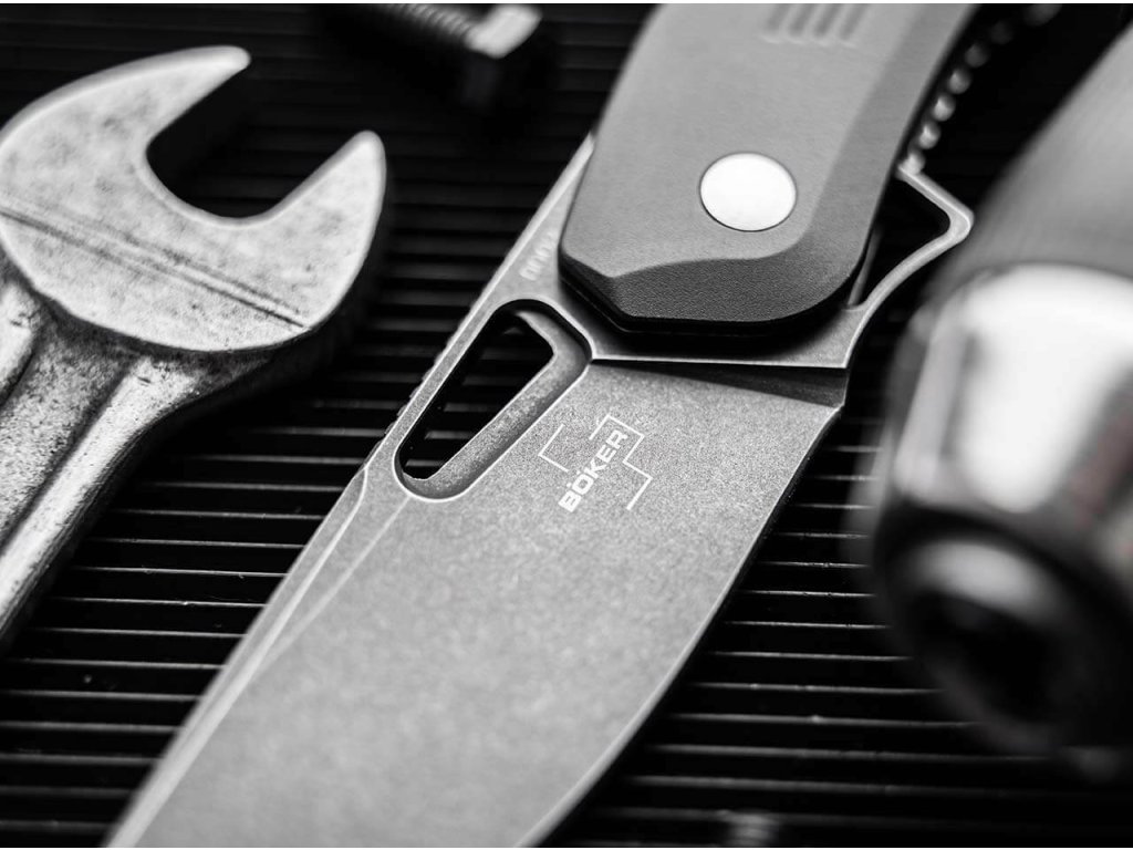Zatvárací vreckový nôž Böker Plus Nahal navrhol Eran Manasherov ako moderný nôž na každodenné (EDC) nosenie.