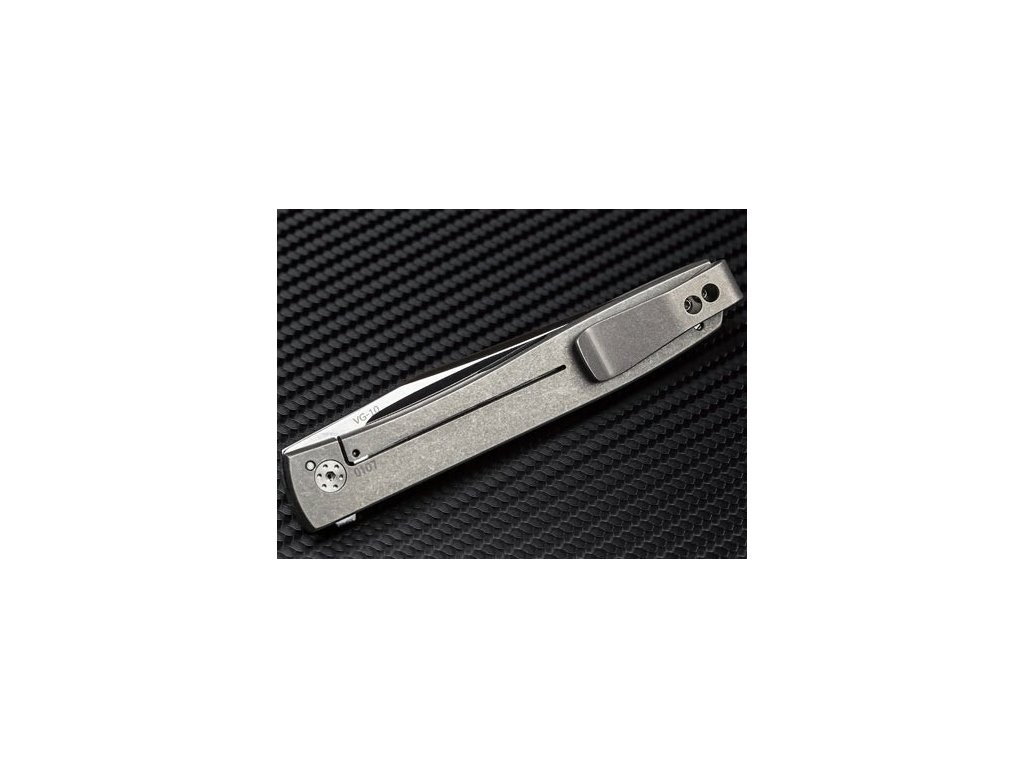 Má čepeľ s hladkou hranou z ocele VG-10 s guľôčkovým ložiskom, otvára sa pomocou vyklápača Flipper a zaisťuje ju Framelock.