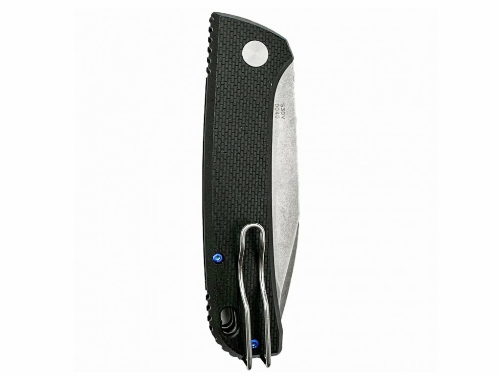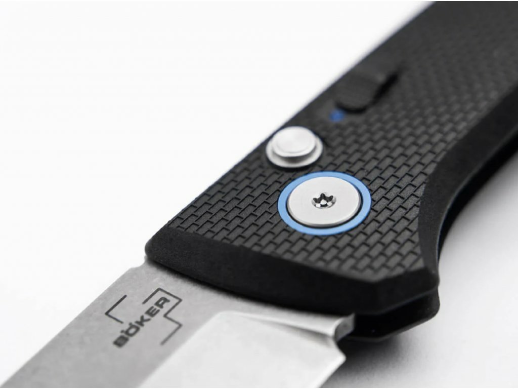 Má čepeľ s hladkou hranou typu Drop Point z nehrdzavejúcej ocele CPM-S30V s povrchovou úpravou Stonewash, otvára sa jednoduchým stlačením tlačidla a zaisťuje ju dvojitá poistka proti nechcenému otváraniu.