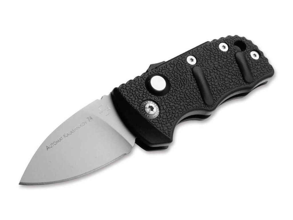 Böker Plus 01KALS91 AKS-74 Stubby Swiss Edition automatický nôž 4,8 cm, čierna, hliník