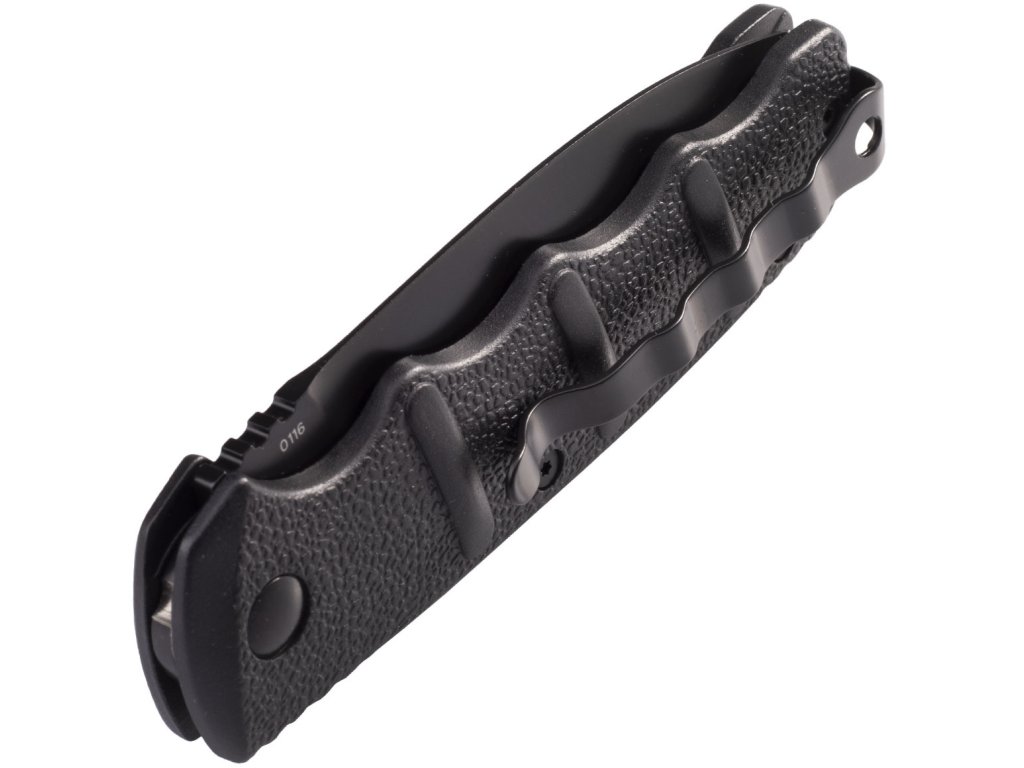 Má čepeľ s hladkou hranou z nástrojovej ocele D2 s čiernym povrchom, otvára sa automaticky tlačidlom, ktoré ho i zaisťuje. Okrem toho ju môže zaistiť aj posuvný zámok.