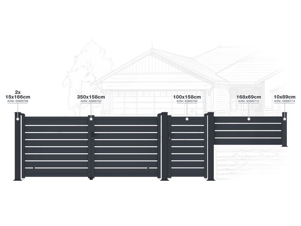Prispôsobiť si takto na mieru môžete všetky diely plotových systémov G21 Reno alebo Marion, či už ide o bránky, brány alebo plotové polia.