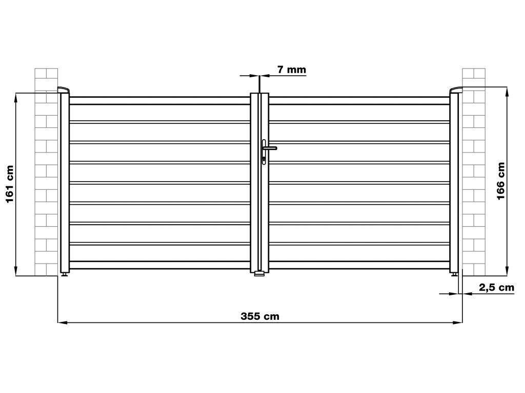 Vjazdová brána je dôležitou súčasťou oplotenia. 158 cm vysoká hliníková brána Reno má vďaka práškovému nástreku ešte dlhšiu životnosť, je odolná, atraktívna a jej šírku môžete aj prispôsobiť existujúcemu oploteniu. Otváranie na kľuku a zámok s FAB vložkou, šírka 350 cm umožní hladký prejazd všetkých vozidiel.