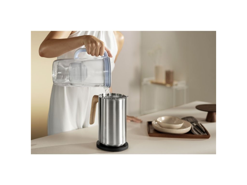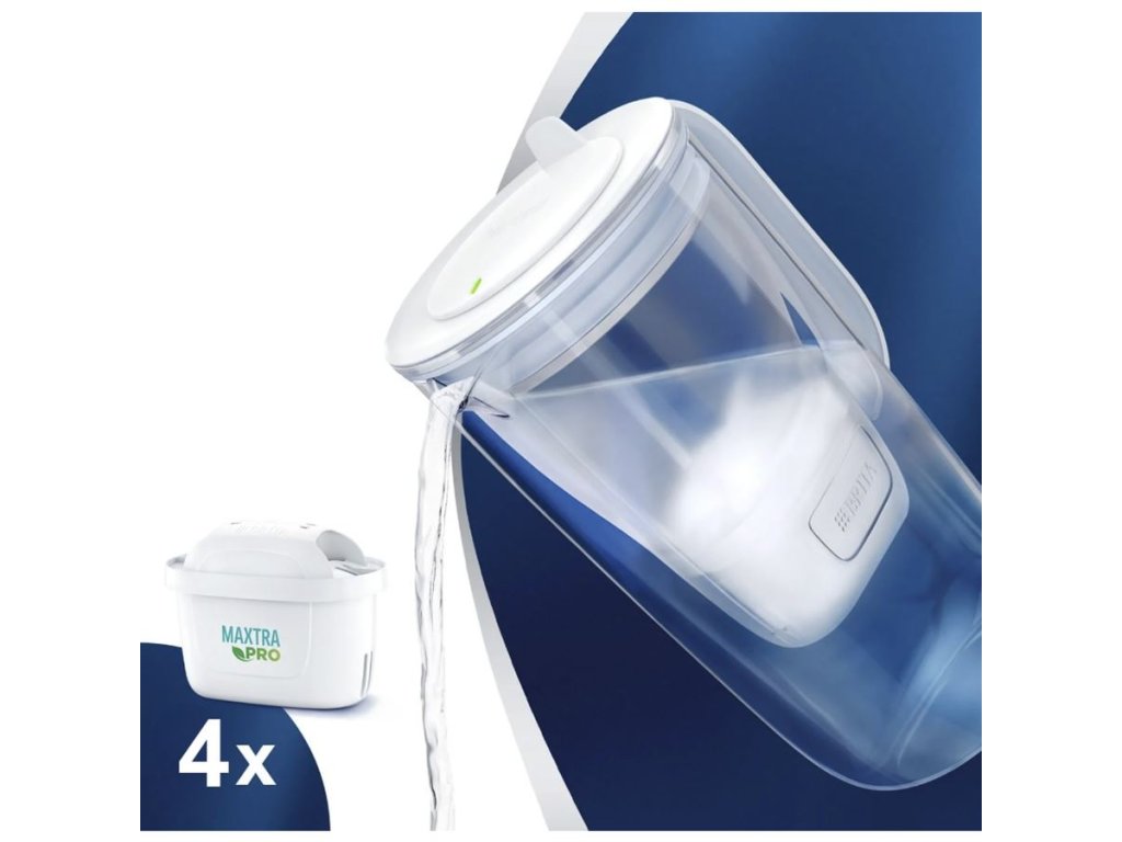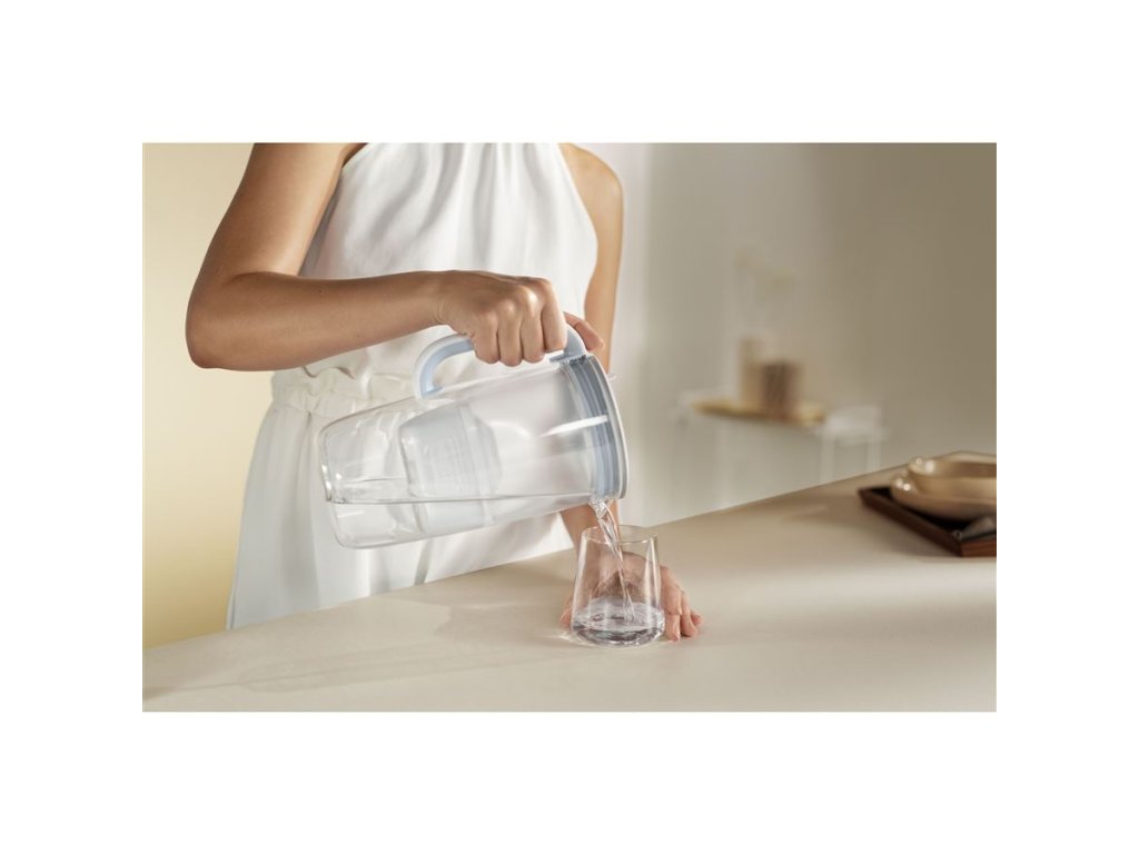 Skleněná filtrační konvice Brita světle modrá 2,5 l (4 ks filtrů Maxtra Pro Pure Performance)Skleněná filtrační konvice Brita One ve světle modrém provedení v sobě spojuje prémiový moderní design s nejlepší technologií filtrování vody od německého výrobce vodních filtrů s téměř 60letou tradicí. Filtrační konvice využívá vodní filtr Brita Maxtra Pro. Díky technologii PerfectFit dojde k optimálnímu přefiltrovaní veškeré vody v horní části konvice přes vodní filtr (voda filtr neobtéká, ale protéká přes vnitřek filtru) během 5 minut. Filtrační konvice je vyrobená z borosilikátového skla, které je lehké a přitom robustní a odolné. Sklo nepřejímá žádné pachy ani chutě, nemění barvu a snadno se čistí. Můžete mýt v myčce nádobí (až do 50 °C) bez LED indikátoru, který lze vyjmout.Ergonomická rukojeť dobře padne do ruky a umožňuje pohodlnou manipulaci i s plnou konvicí. Praktické odklopné víčko pro snadné otvírání umožňuje obsluhovat konvici během plnění jednou rukou.LED indikátor stavu filtru Smart Light vám pomůže ohlídat optimální čas výměny vodního filtru. Režim semaforu (zelená, oranžová, červená) je velmi intuitivní.Výhody filtrační skleněné filtrační konvice Brita dokonale hygienické borosilikátové sklo; jednoduché plnění jednou rukou díky odklopnému víčku; snadná instalace a výměna filtru; výběr ze 2 druhů filtrů Brita Maxtra Pro (lze používat filtry Brita Maxtra Pro Hard Water Expert nebo Pro Pure Performance); LED indikátor výměny filtru Brita Smart Light; rychlá filtrace: svěží a chutná voda kdykoli k dispozici.UdržitelnostDíky filtrování vody, namísto kupování balené vody v plastových lahvích, snižujete svou uhlíkovou stopu. Samotná konvice je vyrobená z 60 % recyklovaného skla a 100 % plastových částí je vyrobeno z bioplastu. Použité filtry je možné recyklovat s využitím recyklačního programu Brita.Čistší, chutnější a svěží voda až na 4 měsíceJeden filtr je určený na přefiltrování 150 litrů vody nebo na 4 týdny používání - podle toho, která z podmínek uplyne dříve.Se 4 filtry tak máte k dispozici čistou a svěží přefiltrovanou vodu až na 16 týdnů.Obsah balení: 1x BRITA filtrační konvice; 4x filtrační patrona Maxtra Pro Pure Performance.Filtrační konvice Brita One je k dostání také v balení s 1 kusem, 2 kusy či 6 kusy filtračních patron Maxtra Pro Pure Performance.**Filtry k filtračním konvicím komplementujeme na základě objednávky. Z tohoto důvodu nemusí být obsah balení shodný s popisem na krabici.** Nejčastější dotazyJaká je životnost patron Brita Maxtra Pro Pure Performance?Jeden filtr je určený na přefiltrování 150 litrů vody nebo na 4 týdny používání - podle toho, která z podmínek uplyne dříve.Filtr Maxtra Pro Pure Performance využívá prověřenou technologii filtrů Brita Maxtra+ s inovovaným složením. Účinněji vylepšuje chuť pitné vody a zbavuje ji zápachu, organických i anorganických nečistot. Filtr obsahuje více aktivního uhlí, a proto účinněji odfiltruje chlór, vodní kámen a další nečistoty. Navíc je vybaven vysoce výkonnou filtrační síťkou, která je 4× účinnější při zadržování drobných částic ve srovnání s filtrem předchozí generace Maxtra+.Video Parametry Rozměry (h × v × š) 25 × 30 × 16 cm Hmotnost 1,2 kg Materiál sklo Objem (l) 2,5 l EAN 4006387120894 Barva modrá Bezpečnostní zdroje BRITA SE, Heinz-Hankammer-Straße 1, 65232 Taunusstein.Tel.: + 49 800 500 19 19, E-mail: dispenser.resellers@brita.netsummary::-webkit-details-marker { display: none; } summary::marker { display: none; }Dodatočné parametre