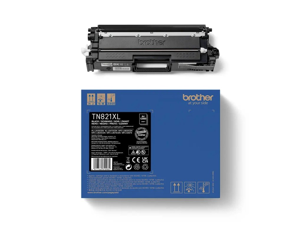Originální tonerová kazeta Brother TN821XLBK s vysokou výtěžností – černá * Černá tonerová kazeta Brother TN821XLBK. Potiskne 12000 stran *Originální tonerové kazety Brother jsou pečlivě testovány, aby pokaždé zajistily perfektní výtisk a úsporu času a peněz *Použitím této originální laserové tonerové kazety Brother TN821XLBK s vysokou výtěžností chráníte záruku své tiskárnyDodatočné parametre