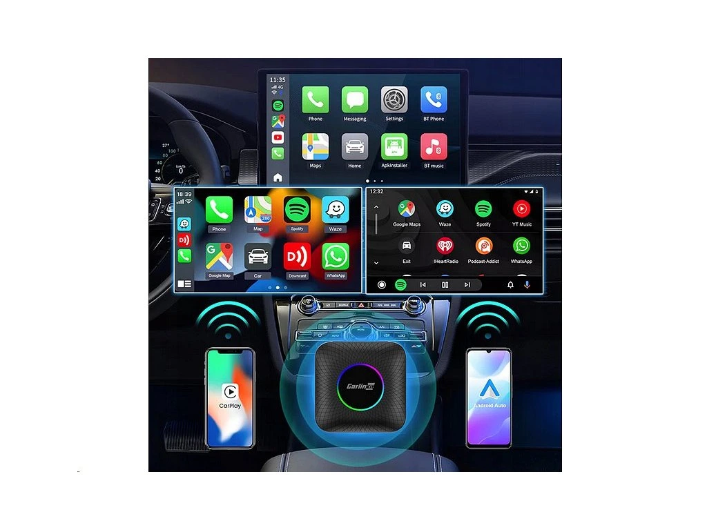 Máte ve svém autě originální autorádio se systémem Apple Carplay nebo Android Auto a už vás nebaví neustálé připojování mobilu kabelem? Tak právě pro vás je určen tento univerzální pokročilý bluetooth adaptér, který nahradí nepohodlné připojování mobilního telefonu USB kabelem pro spojení Apple Carplay / Android Auto a ještě k tomu Vám otevře svět multimédií!