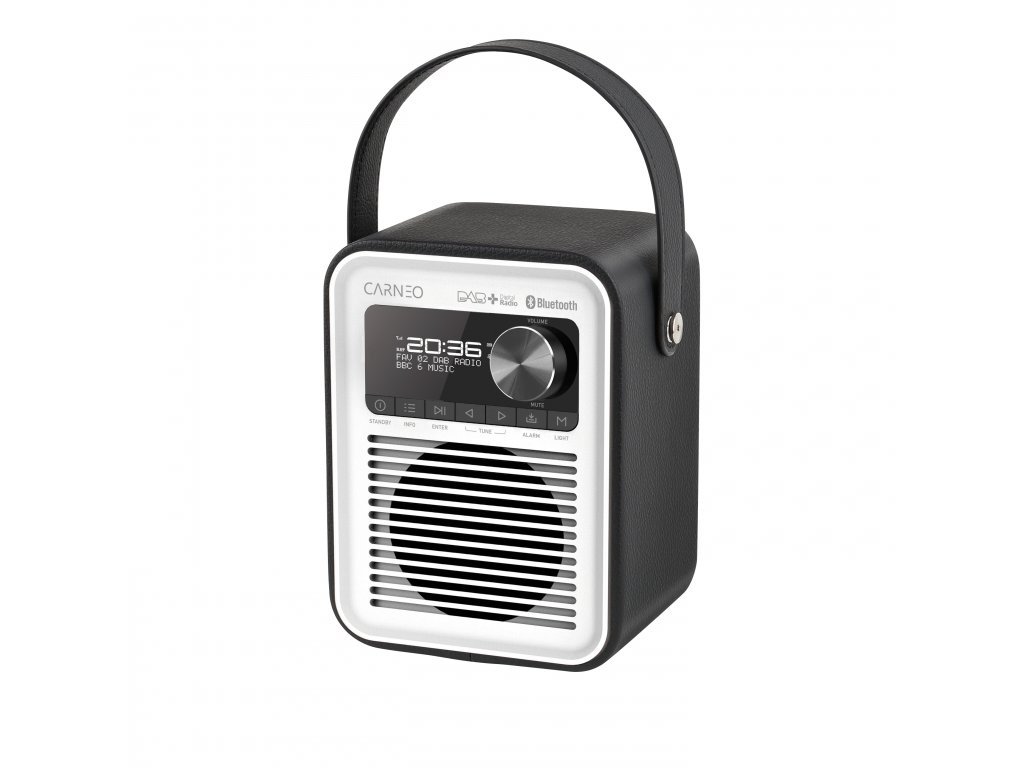 Rádio DAB/DAB+/FM CARNEO D600 CARNEO D600 je kompaktní rádio s módním designem. Poslouchejte své oblíbené rozhlasové programy v pásmu FM nebo DAB+. Digitální tuner DAB+ přijímá signály z éteru čistě a bez šumu. Oblíbenou hudbu můžete poslouchat také bezdrátově prostřednictvím Bluetooth ze smartphonu nebo tabletu. S dalšími 40 předvolbami pro DAB a 40 předvolbami pro FM se už nikdy nebudete nudit. Zvukový výstup umožňuje poslech hudby přes kabelová sluchátka. Rádio má povrchovou úpravu z umělé kůže a design rukojeti, což zvyšuje jeho kvalitu a precizní zpracování. Díky vestavěné baterii Lion s kapacitou 1800 mAh můžete rádio používat kdekoli několik hodin, aniž byste jej museli připojovat k elektrické síti. Specifikace produktu: Rádio DAB / DAB+ Rádio RDS FM Bluetooth 5.0 Dvojitý budík/časovač spánku Přehrávání hudby z karty USB/TF DOT Matrix LCD displej / dřevěné tělo Automatické nastavení hodin prostřednictvím DAB 40 předvoleb pro oblíbené stanice DAB/FM Zvukový výkon: RMS 3 W x 1 Frekvenční odezva: 120 Hz - 18 kHz Poměr S/N: ?70 dBA Zkreslení: ?1 % Vestavěná baterie: 3,7 V / 1800 mAh Napájení: DC 5V 600mADodatočné parametre