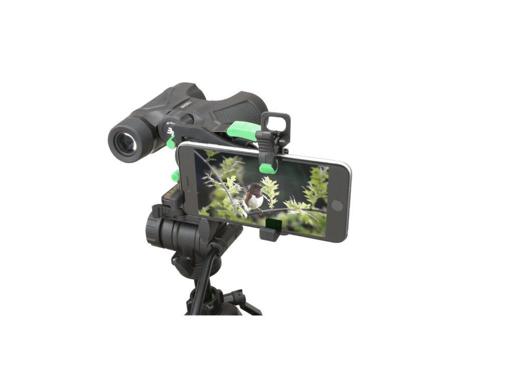 Pripojenie smartfónu k optickému zariadeniu je rýchle a jednoduché. Exkluzívna svorka pre telefón a zámok na objektív optiky zabezpečujú pevné uchytenie telefónu aj optiky. Je vhodný pre širokú škálu optických prístrojov s vonkajším priemerom okulára od 25 do 58 mm. Keď sa adaptér nepoužíva, možno ho uložiť do priloženého tvrdého penového puzdra.