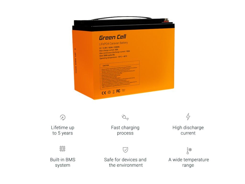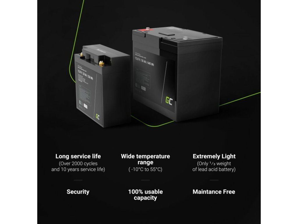 Lítium-železofosfátová batéria s kapacitou 38Ah sa vyznačuje vynikajúcou odolnosťou, prúdovým výkonom a rýchlosťou nabíjania. Má tiež dlhšiu životnosť a je ľahšou alternatívou k oloveným batériám.