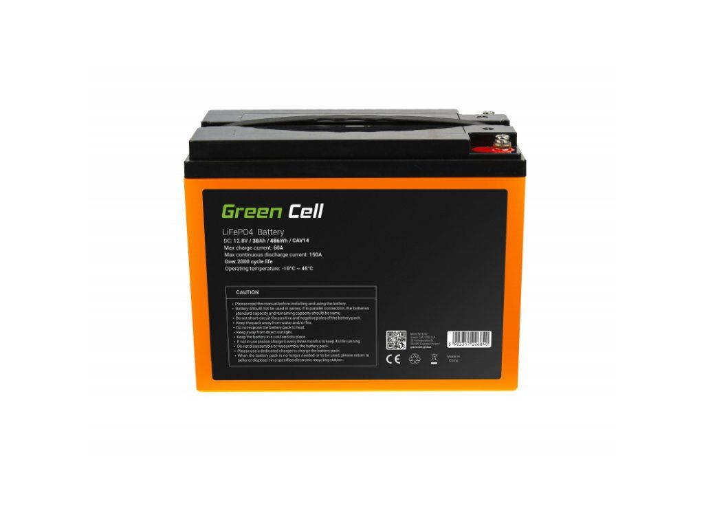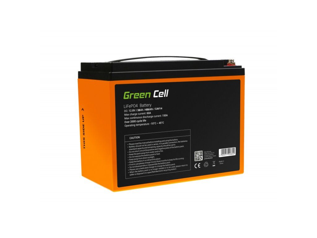 CAV14 Green Cell Battery Lithium-iron-phosphate LiFePO4 12V 12.8V 38Ah for photovoltaic system, camp