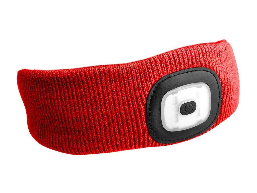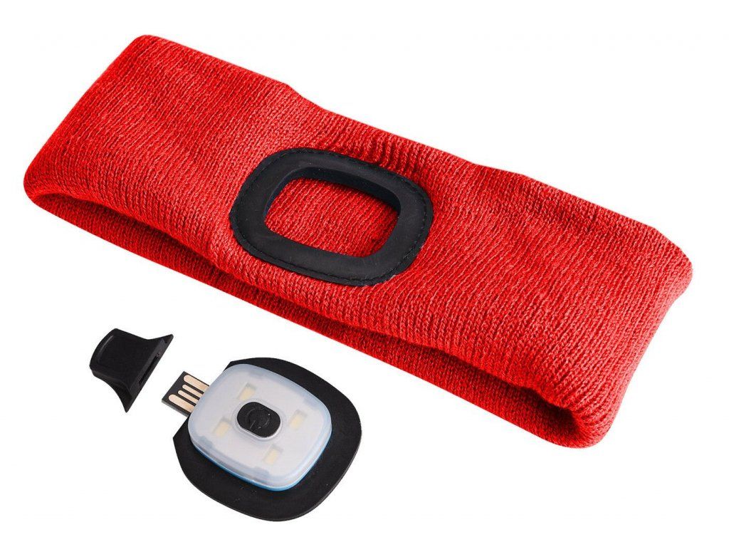 Čelenka s čelovkou 180lm, nabíjecí, USB, univerzální velikost, bavlna/PE, červená SIXTOL