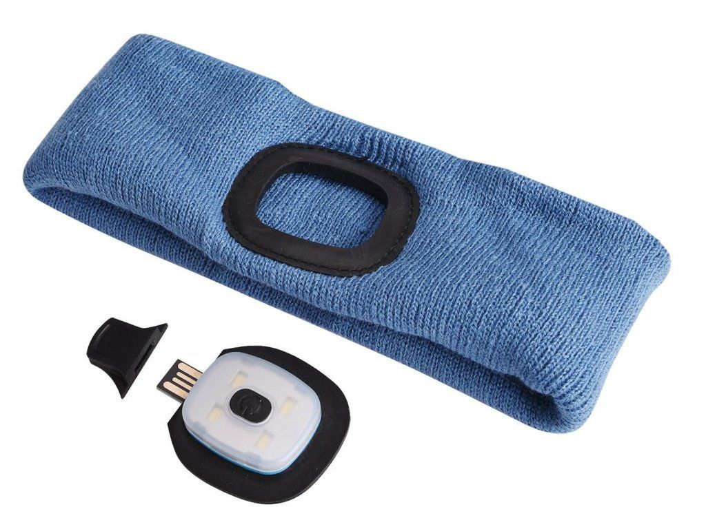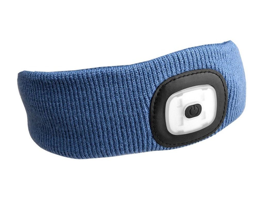 Čelenka s čelovkou 180lm, nabíjecí, USB, univerzální velikost, bavlna/PE, modrá SIXTOL