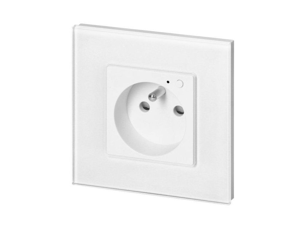 Zásuvka je určená na zapustenú montáž. Má jeden ochranný kontakt (kolík). Je vyrobená z bieleho lesklého skla, vďaka ktorému interiér pôsobí moderne. Stupeň krytia IP20 umožňuje inštaláciu v suchých miestnostiach, ako sú obývacie izby, chodby alebo spálne. Rozmery sú 86x86 mm. Dostupné aj v čiernej farbe.
